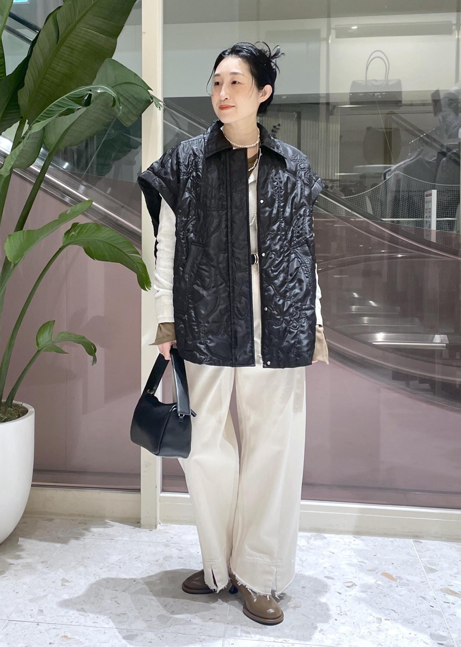 ADAM ET ROPÉ FEMME2WAYキルティングシャツジャケットブラック / F¥37,400レビュー薄手の中綿素材。ゆったりしたサイズ感なので、中に厚手のスウェットやニットなども着込めます。