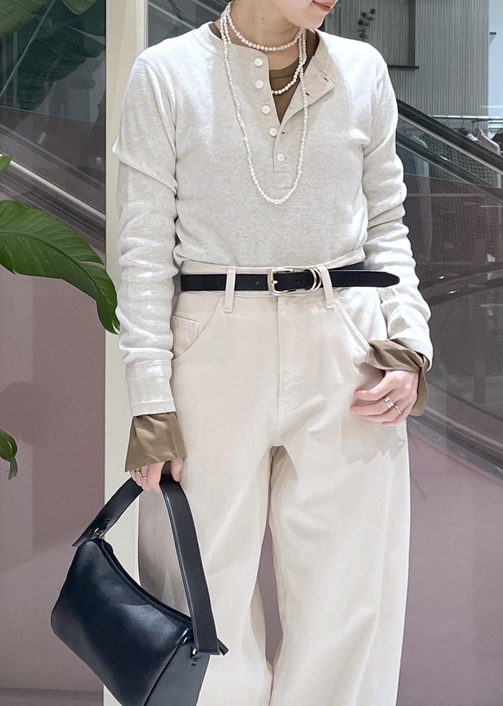 NEW!ADAM ET ROPÉ FEMME【FAITH for ADAM ET ROPE'】別注サーマルTOPSキナリ / F¥8,800レビューシアーなど薄手のインナーなら中に一枚着れますが、全体的にコンパクトなサイズ感です。