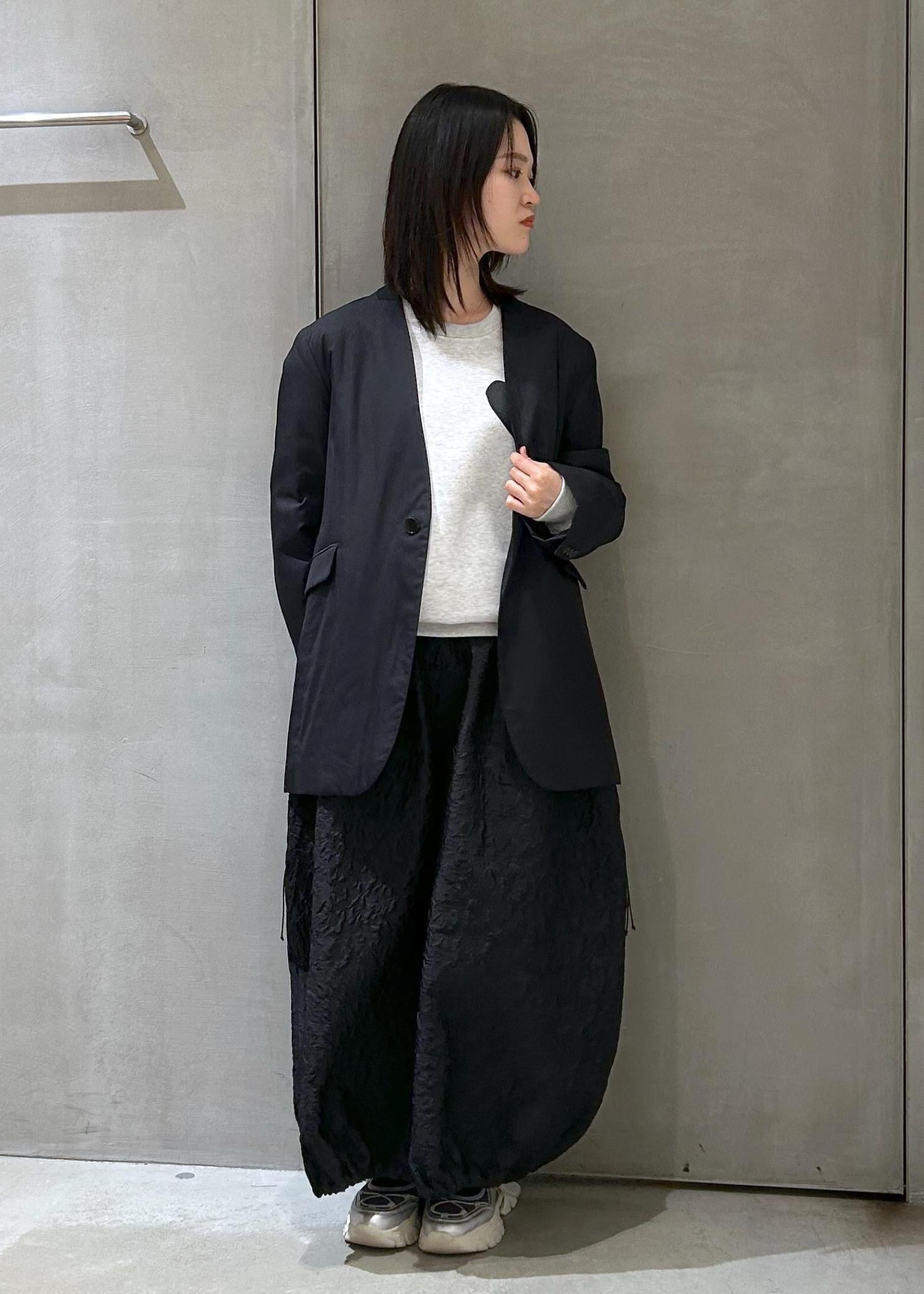 スウェットにジャケットとスカートを合わせてキレイめカジュアルっぽく合わせてみました!デニムなどを合わせてもより
