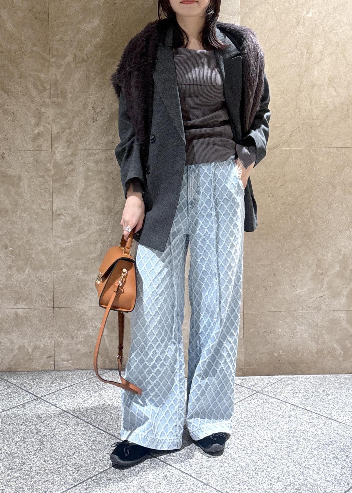 VISヘリンボーンツイードベルテッドジャケット/セットアップ対応チャコール / F¥5,000レビュー生地感はぱっと見ボリュームがあって厚みもありそうでしたが、良い意味で意外とあっさり着られるので着心地が軽くて◎