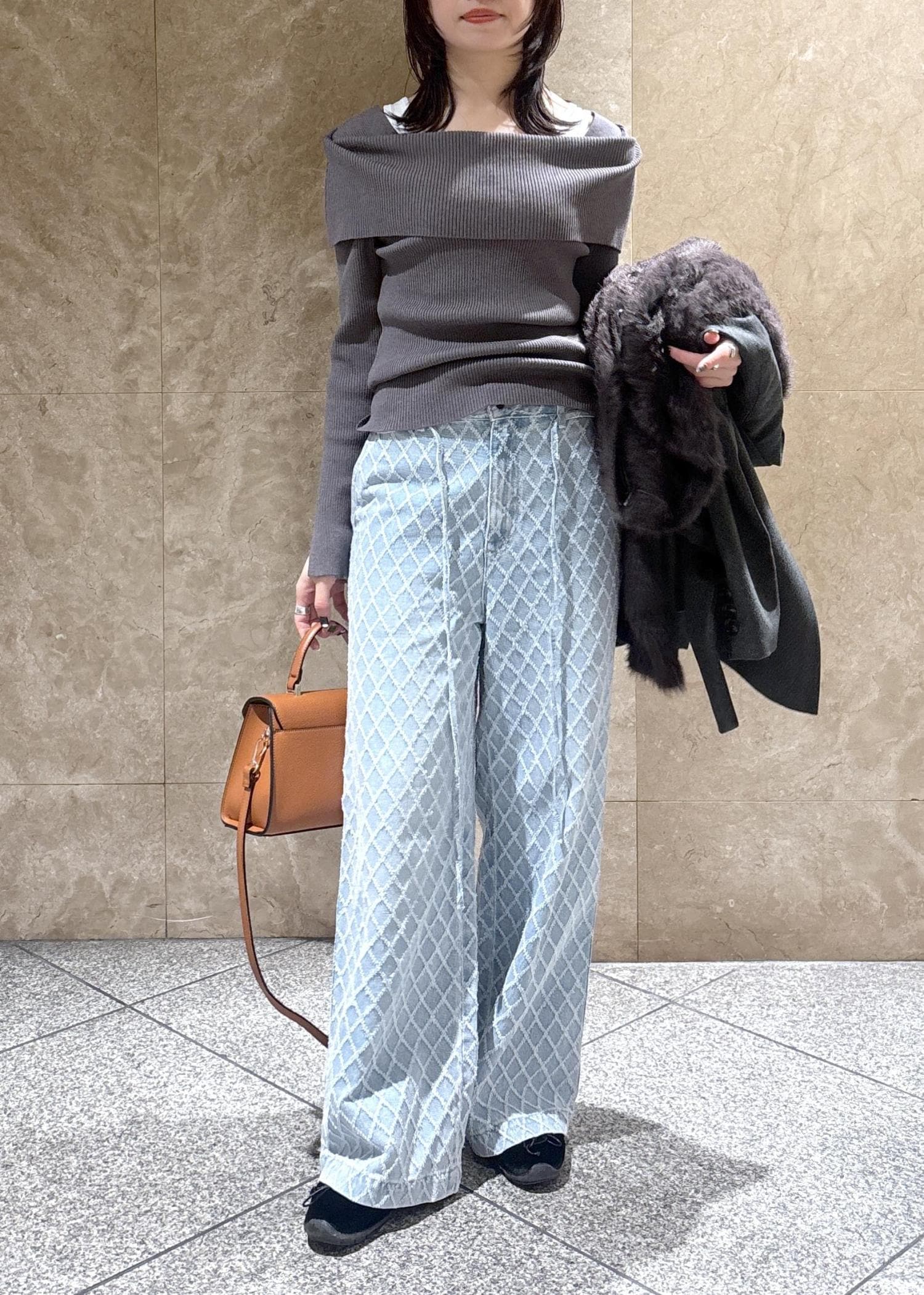 VIS【美得】オフショルダーモチモチリブニット/好評につき再入荷グレー / F¥5,489レビュー袖丈は長すぎず、ぴったりくらい。