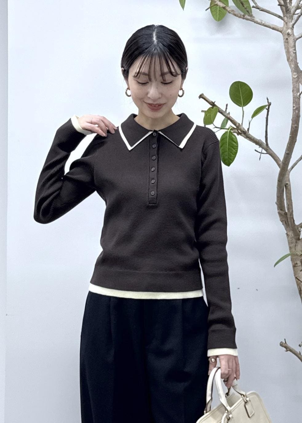 NEW!ROPÉ PICNICレイヤード風ヘンリーネックリブニットブラウン / F¥5,489レビュー細見えするリブ編みデザインですが締め付け感はなく楽な着心地。ジャケットのインナー使いにもちょうどいいサイジング。着丈は腰が隠れる長さ。配色デザインがトレンド感もあってお洒落です。ボタンの開け閉めできちんと見えからラフな雰囲気などその日の気分やシーンに合わせて微調整出来るのも嬉しい◎