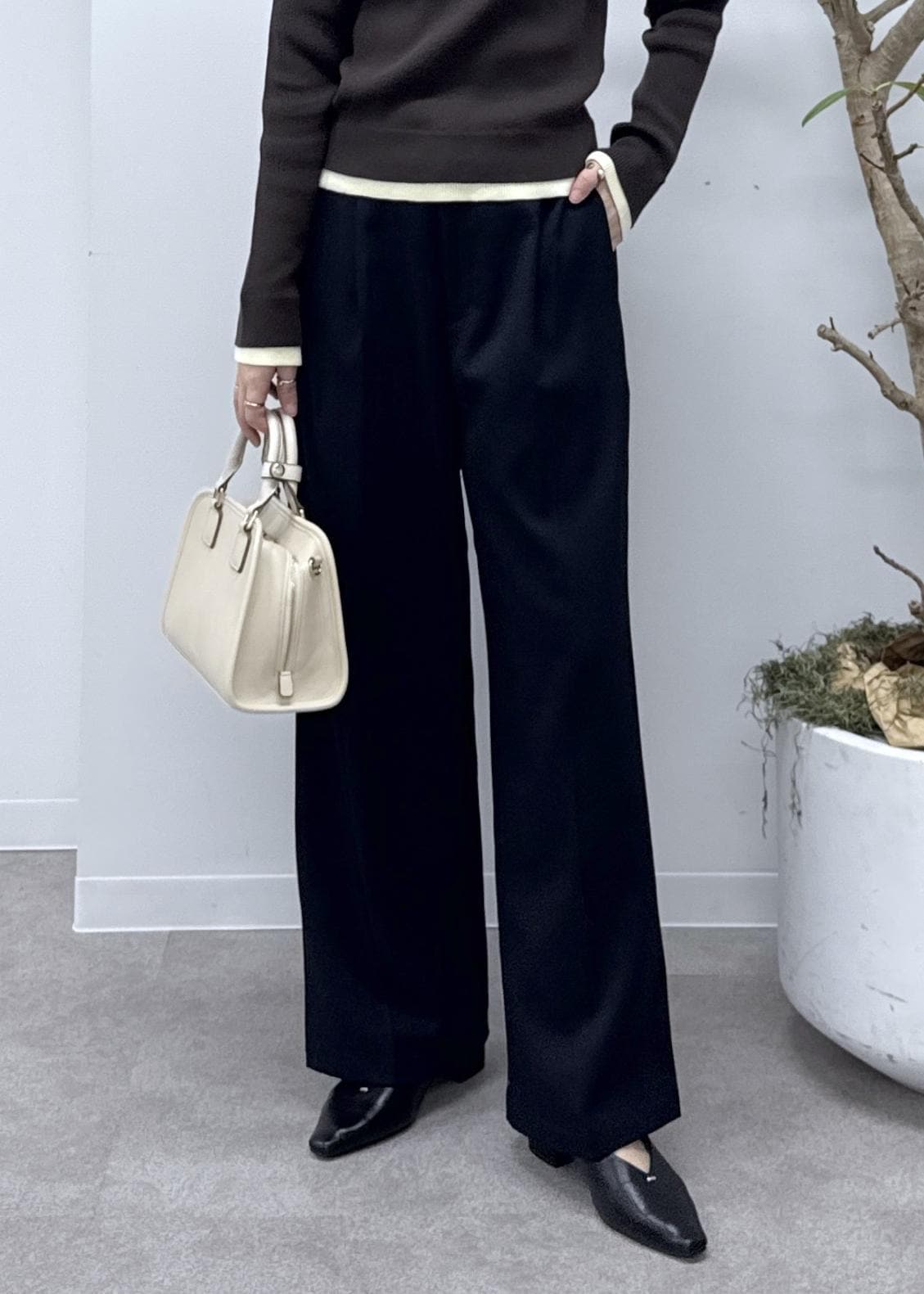 ROPÉ PICNICレディハンサムシリーズ ウールライクウエストタックセミワイドパンツ/セットアップ対応ネイビー / M¥4,940レビュー前回も人気だったパンツが再登場♪センタープレスやハリのある生地感は美シルエットと高見えを両立してくれます。162㎝でローヒールと合わせると丁度いいバランスで履けました。