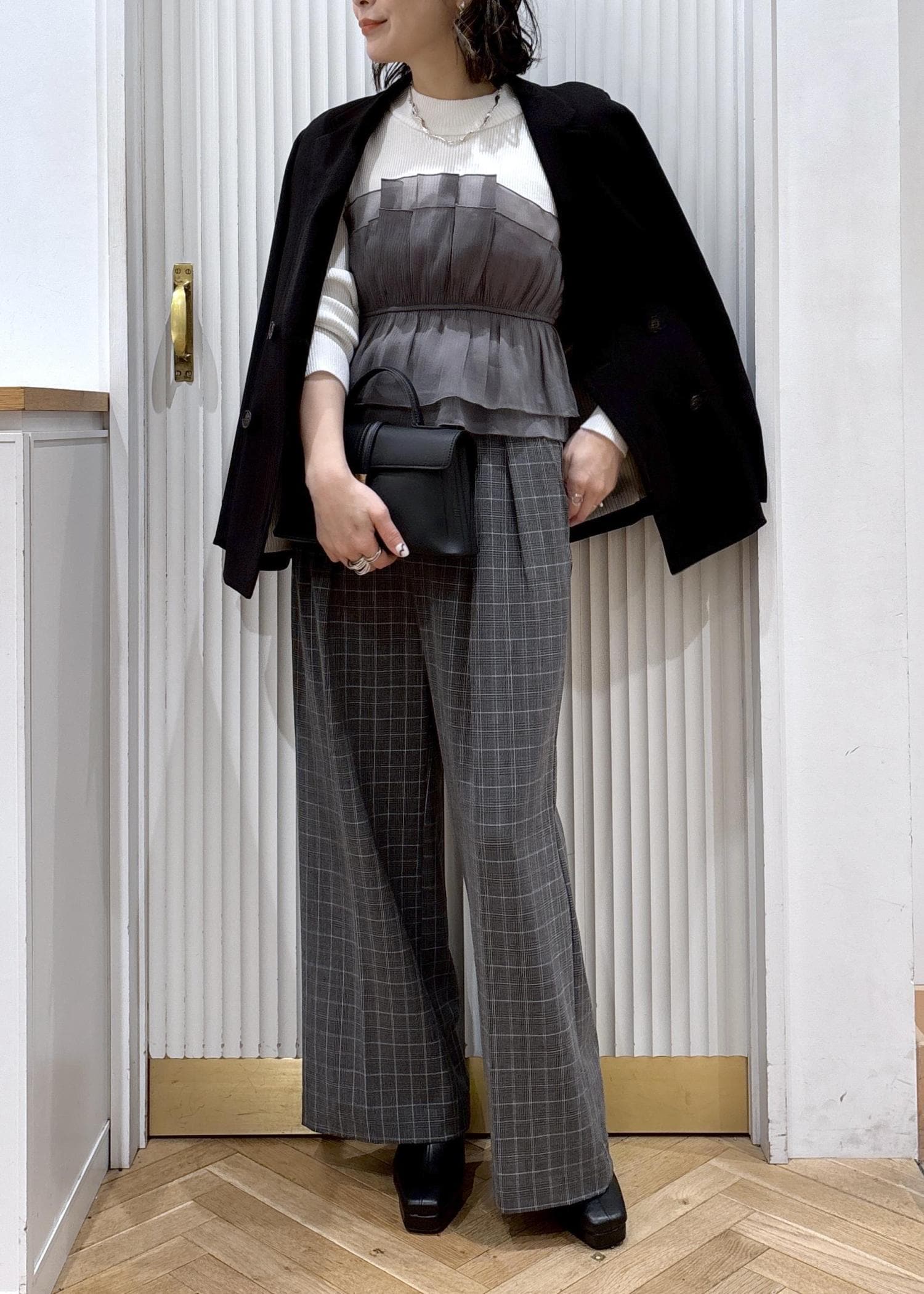 ジャケットを羽織ればセレモニーにも活躍♡室内では肩掛けで。