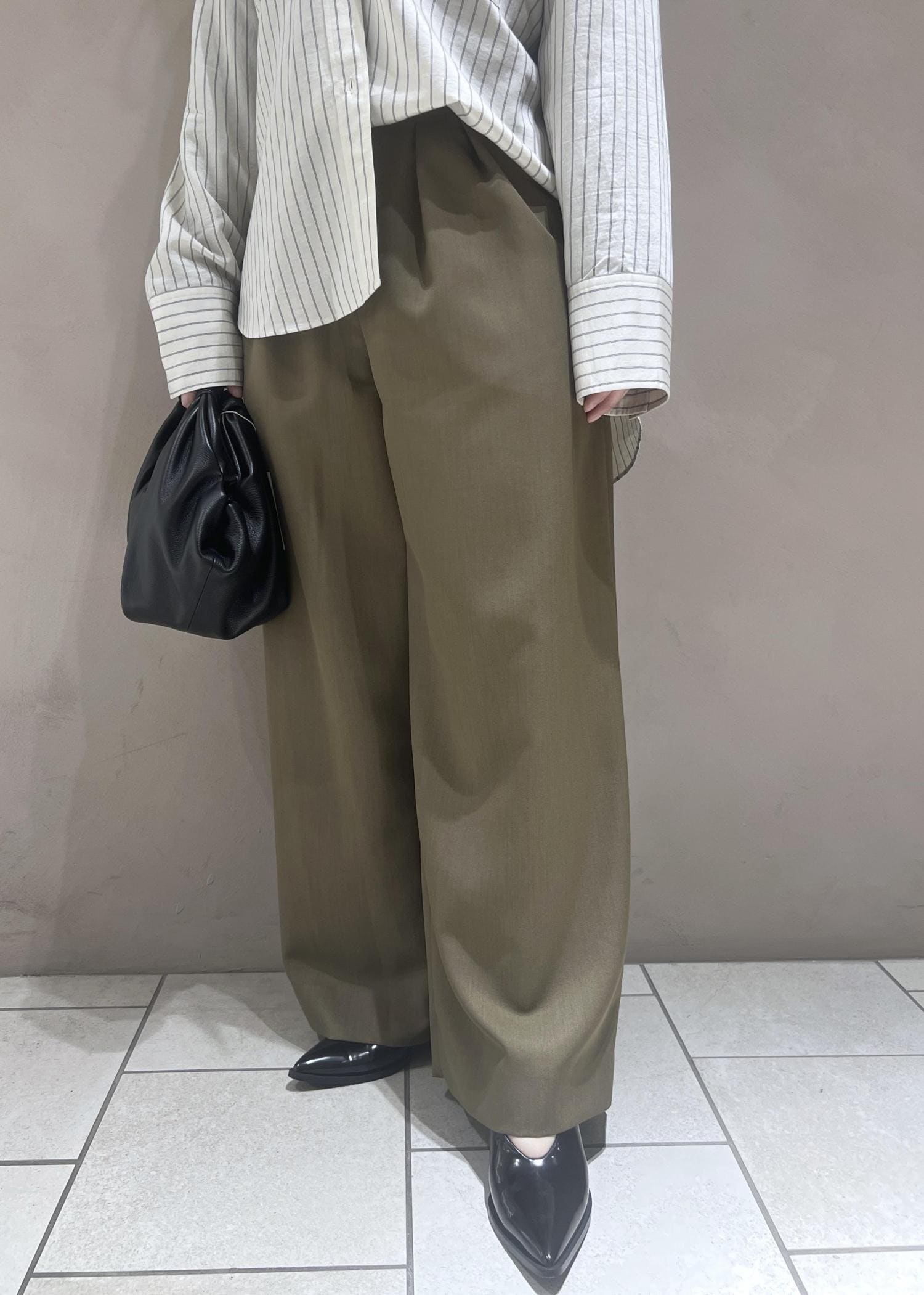 かなりしっかり目にワイド感のあるパンツです!ベルト付きですが、もちろんお手持ちのベルトと合わせても◎これから春にかけてスカーフなどをポイント使いするのも可愛いですね♡