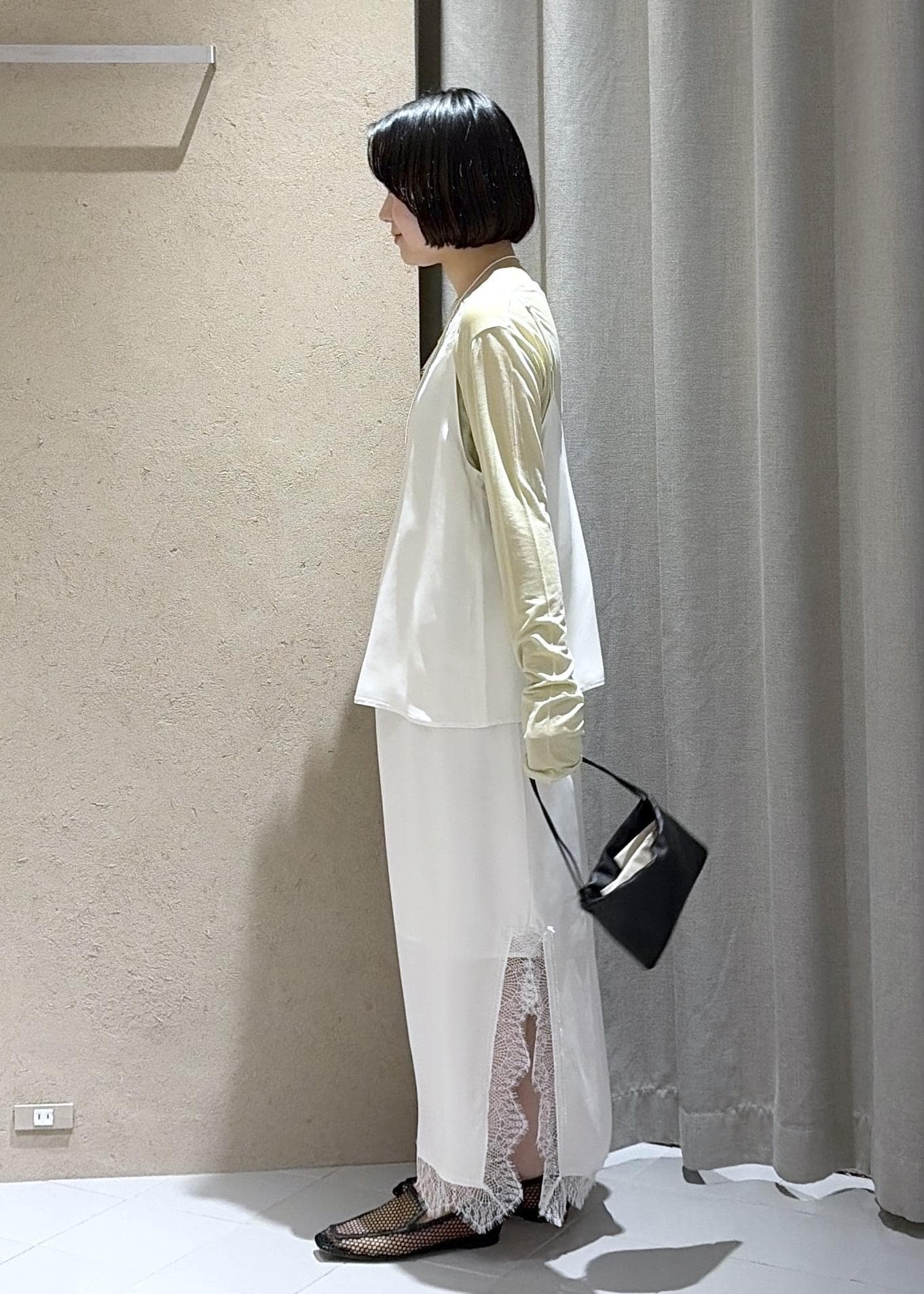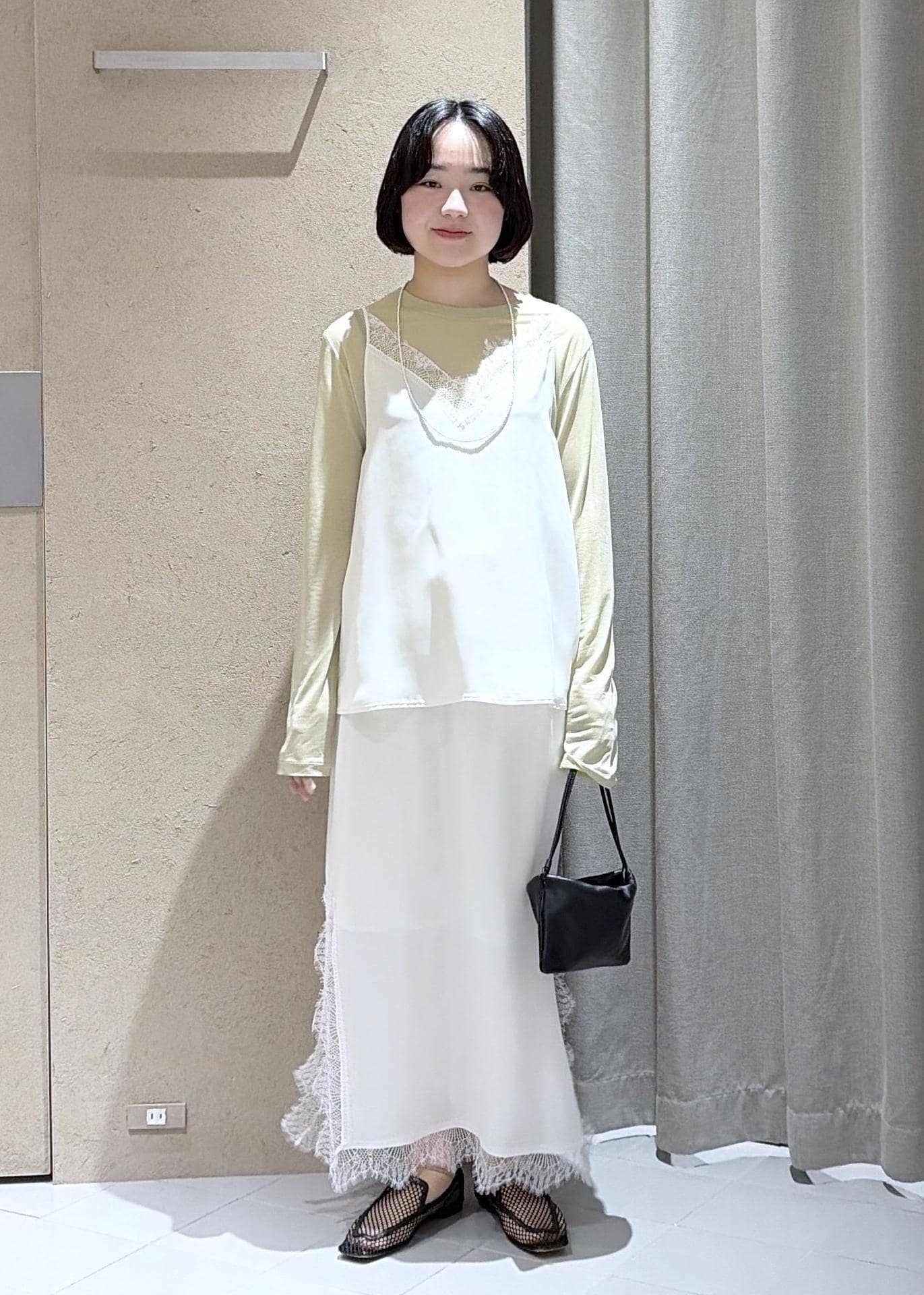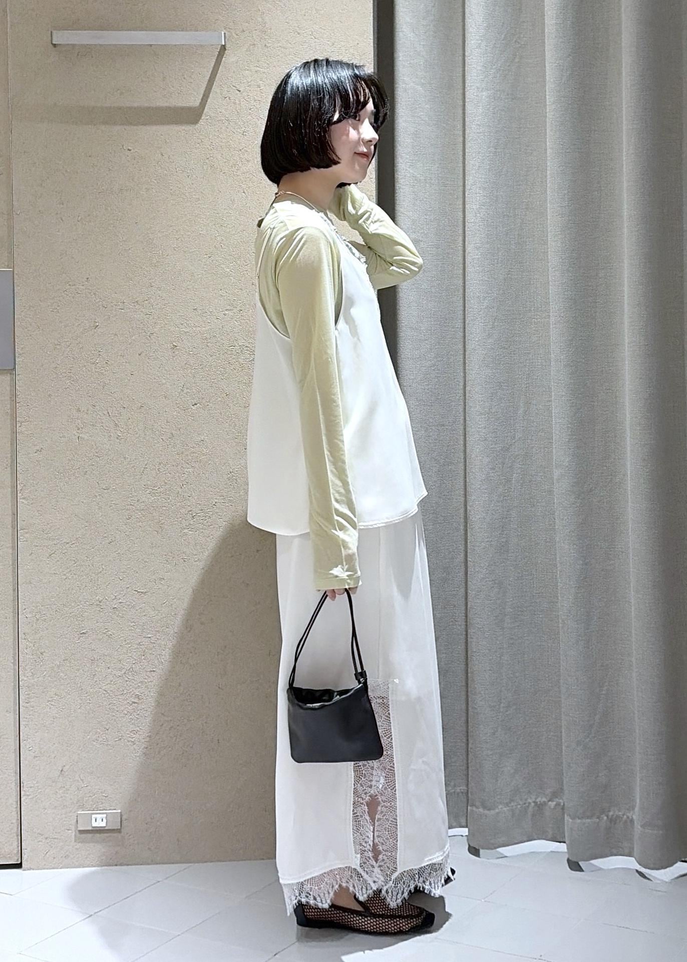 今季も引き続きトレンドのレースを取り入れたセットアップ。華奢見えするオチ感のあるデザインでトレンドに合わせたスタイリングにおすすめです。今回はセットアップで合わせていますが、キャミソール×デニムの定番スタイルや、パンツにスカートをレイヤードしたりなどマルチに使えるイチオシ商品です。