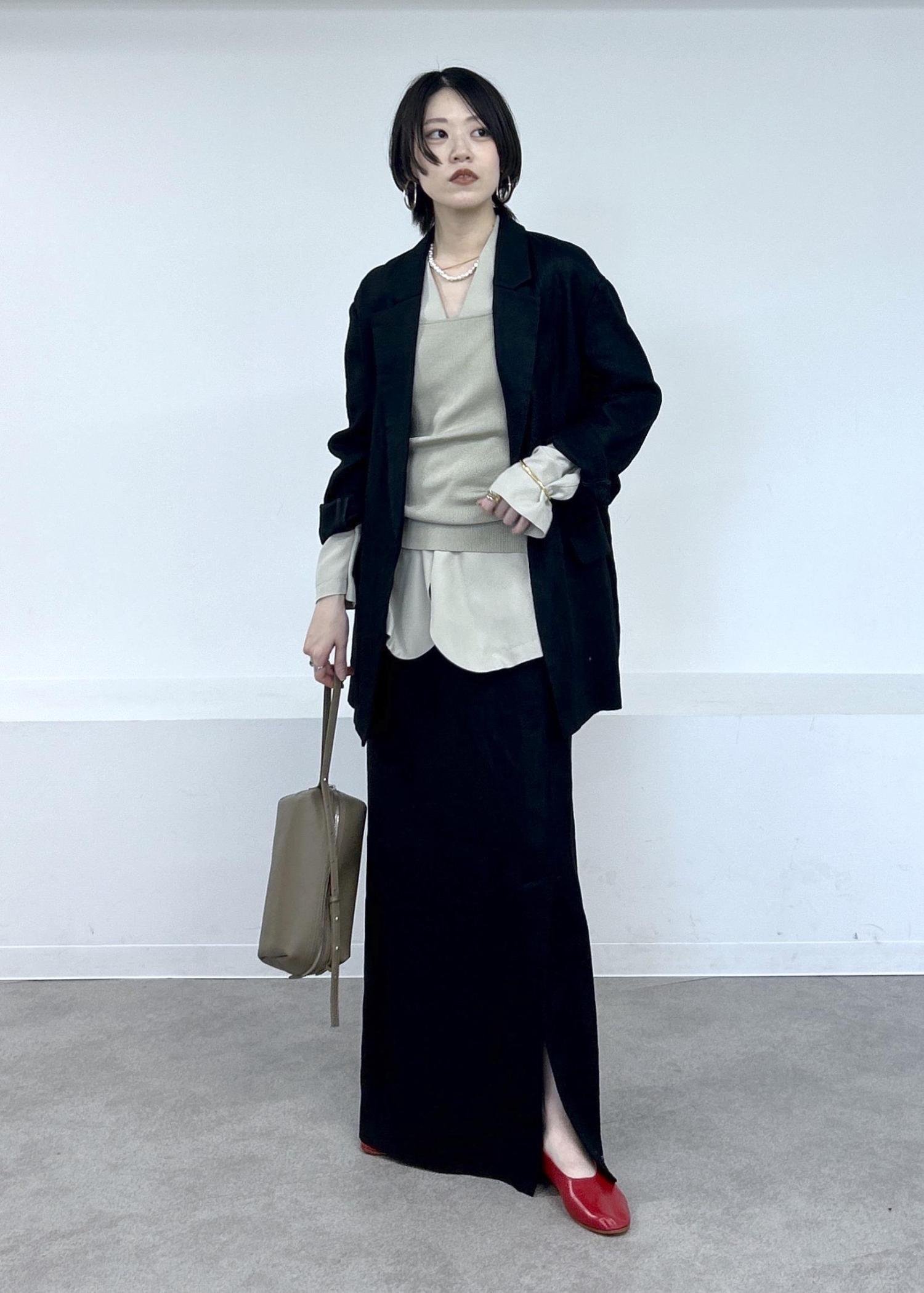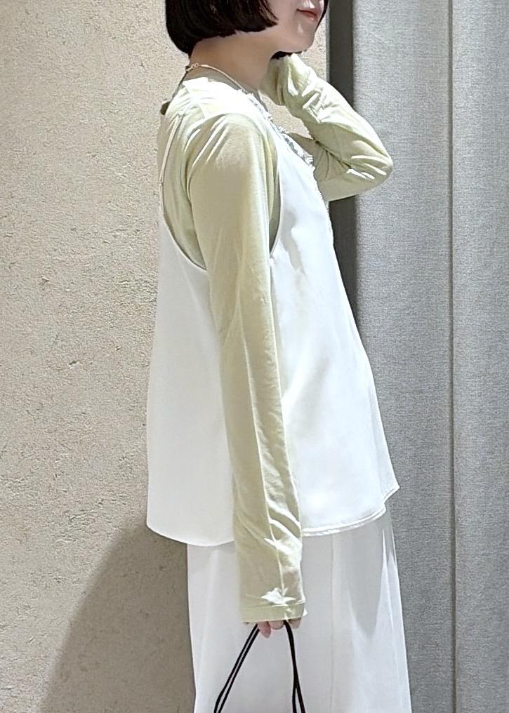 インナーには透け感のあるカットソーを合わせ春から初夏にかけてきていただけるスタイリングにしてみました。