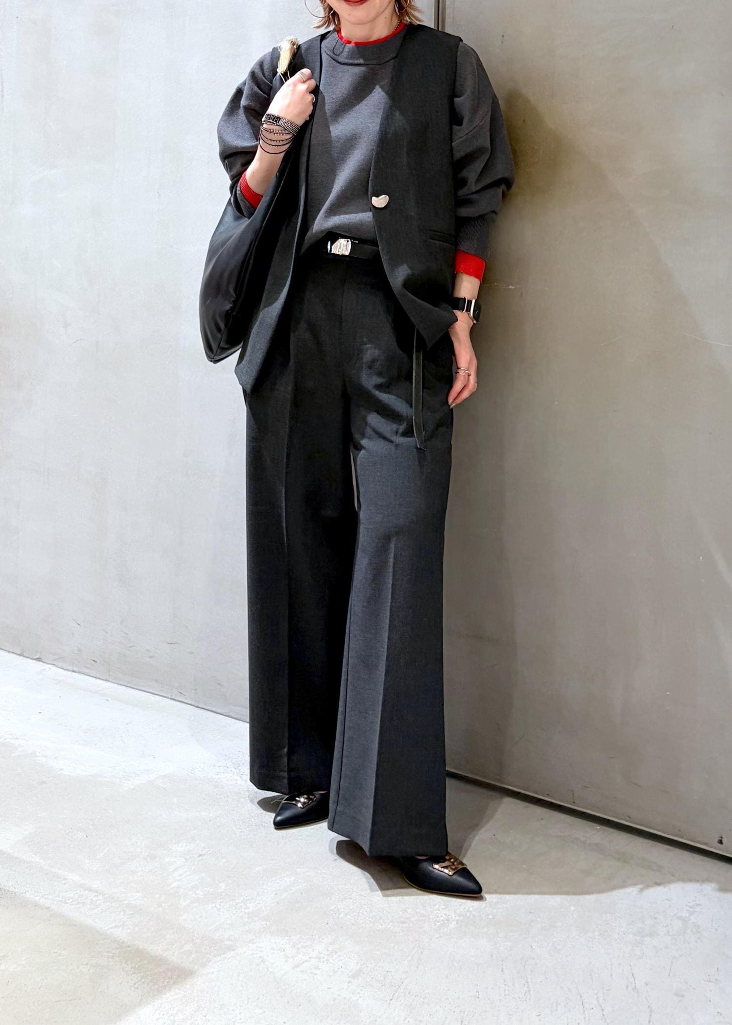 LE CERCLE par ropéタックワイドパンツ/セットアップ対応チャコール / F¥10,890レビュー太すぎないワイドパンツです。
