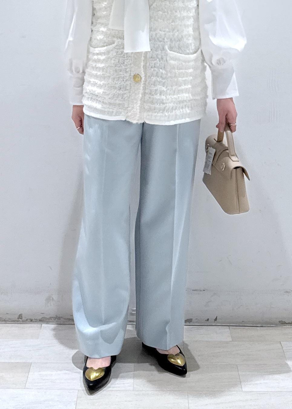 今回は新作で入荷しましたこれから行事などに使えるカチッとしすぎない綺麗めセレモニーコーデです。グリーンのカラーパンツで色を入れて春っぽく♪行事が終わればブラウスは単体で使えたり、デニムとの合わせでカジュアルにもお使いいただけます。