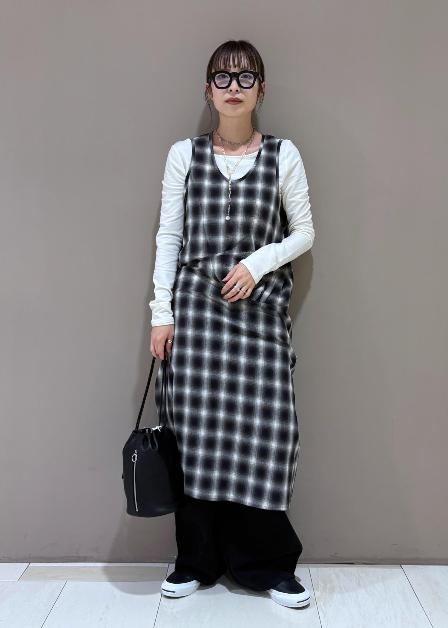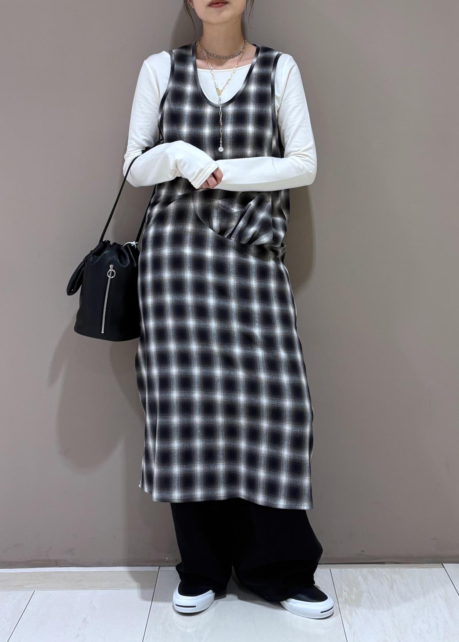 NEW!ADAM ET ROPÉ FEMMEチェックワンピースブラック系 / F¥26,400レビュー162cm、フリーサイズ着用。