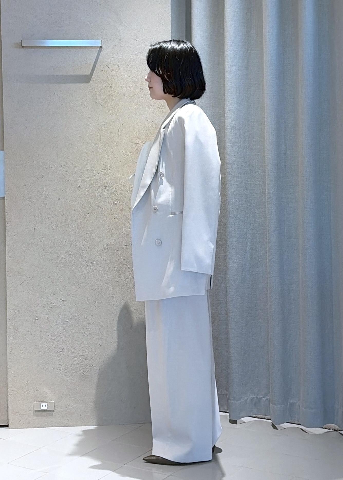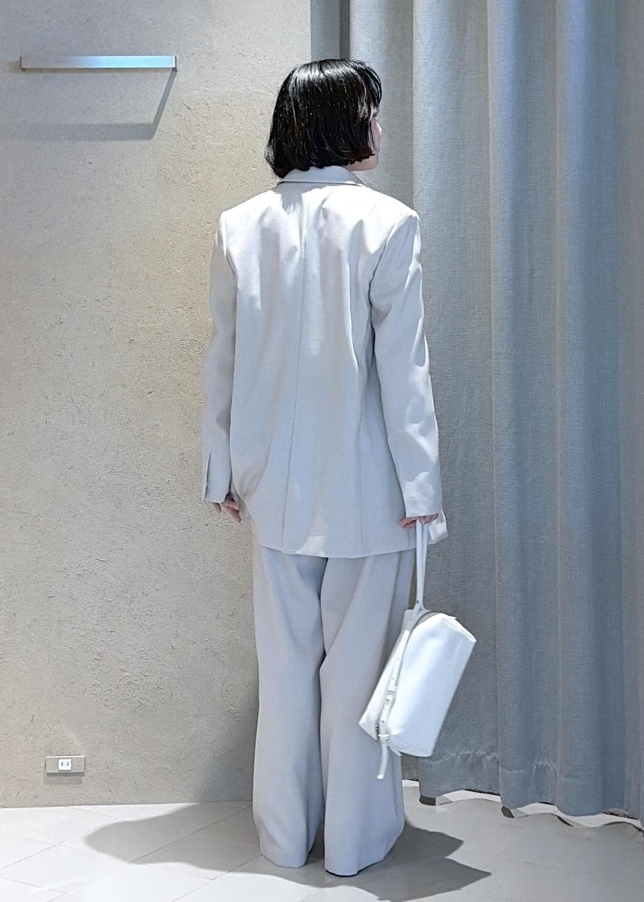 SALON adam et ropéトレビラツイルテーラードジャケットベージュ / F¥39,600レビュー身長155センチが着用してしっかりヒップが隠れる丈です。ゆとりのあるジャケットですが、肩パットが入っていないので着られてる感も出にくく、カジュアルスタイルにもおすすめです。