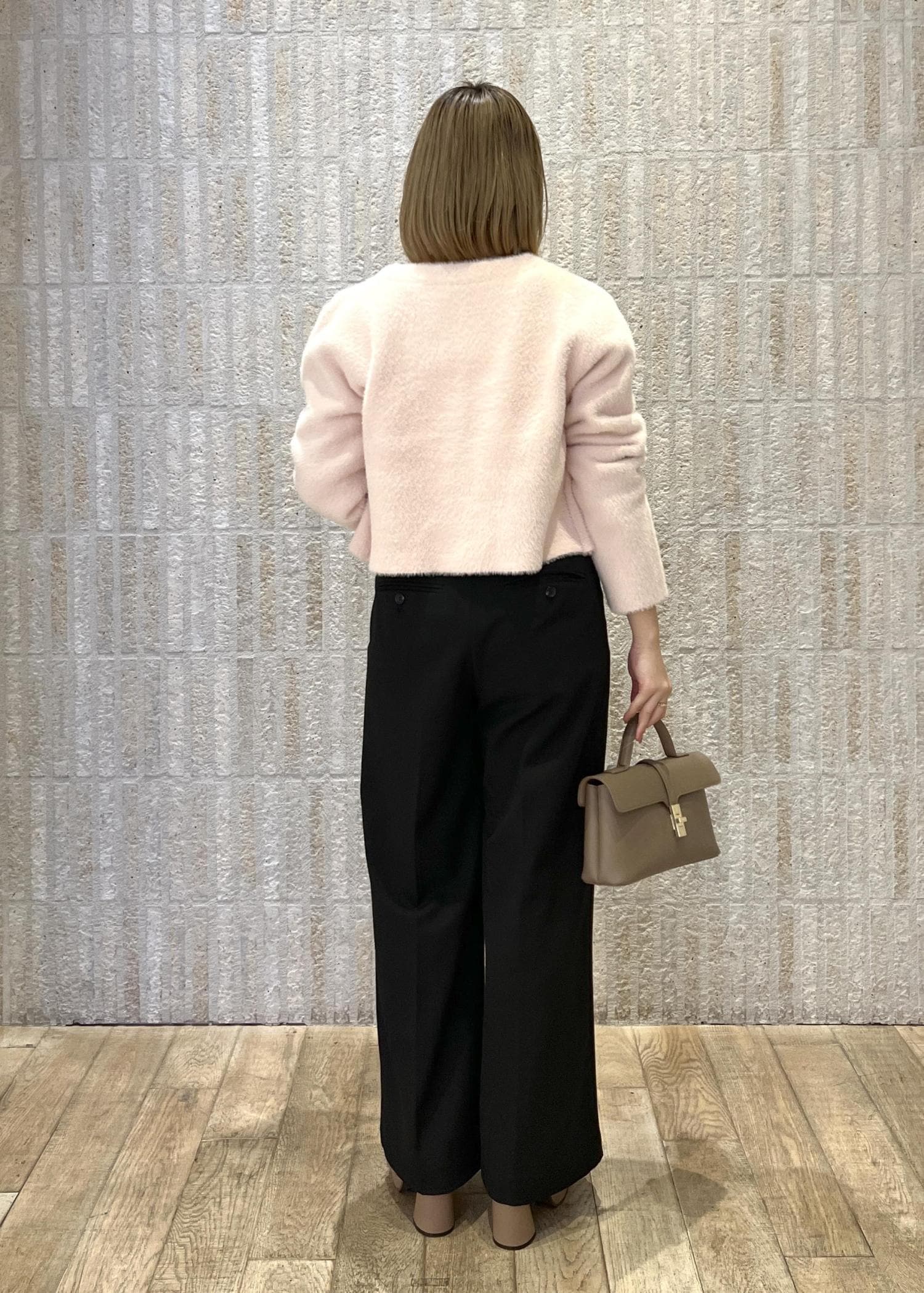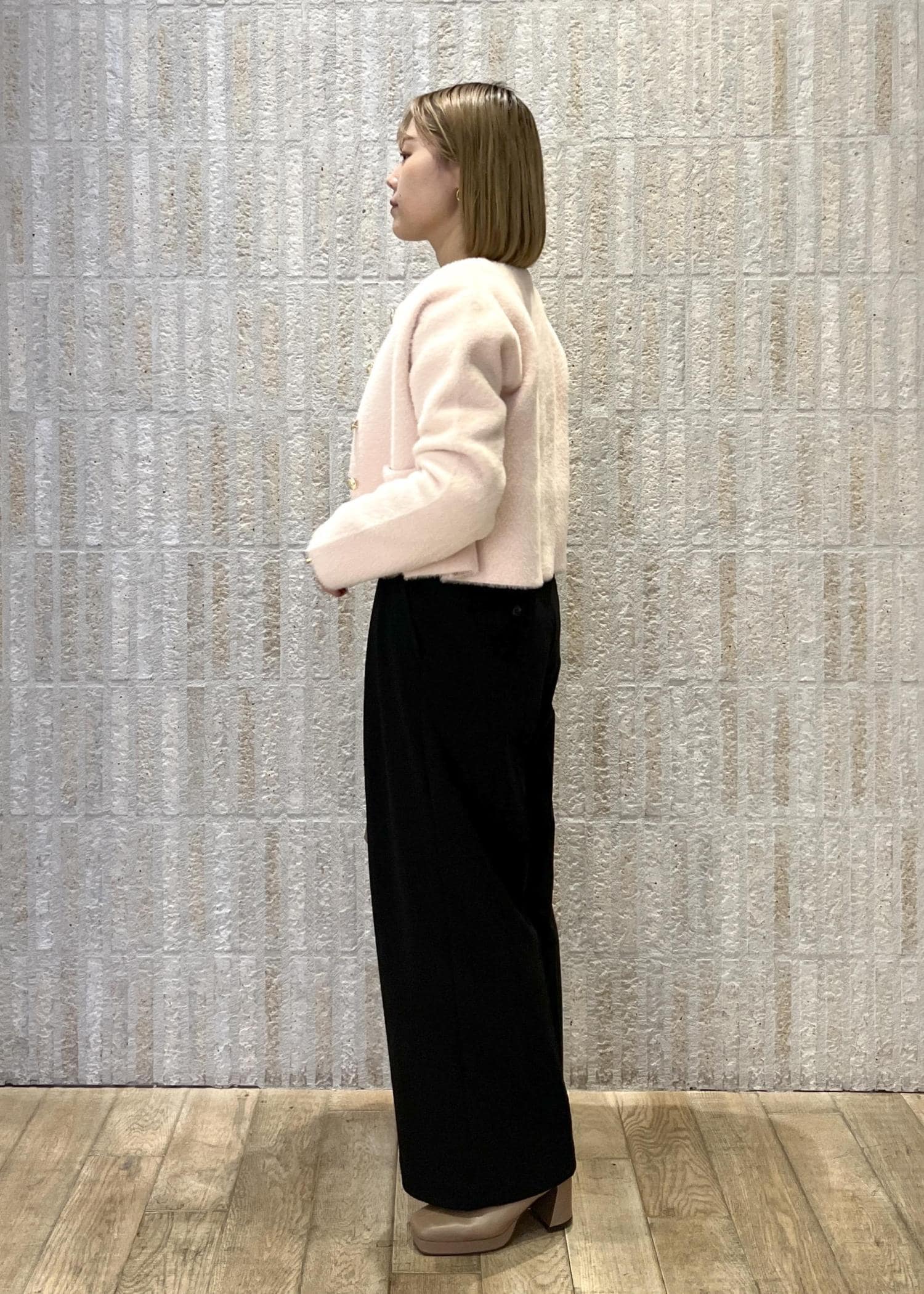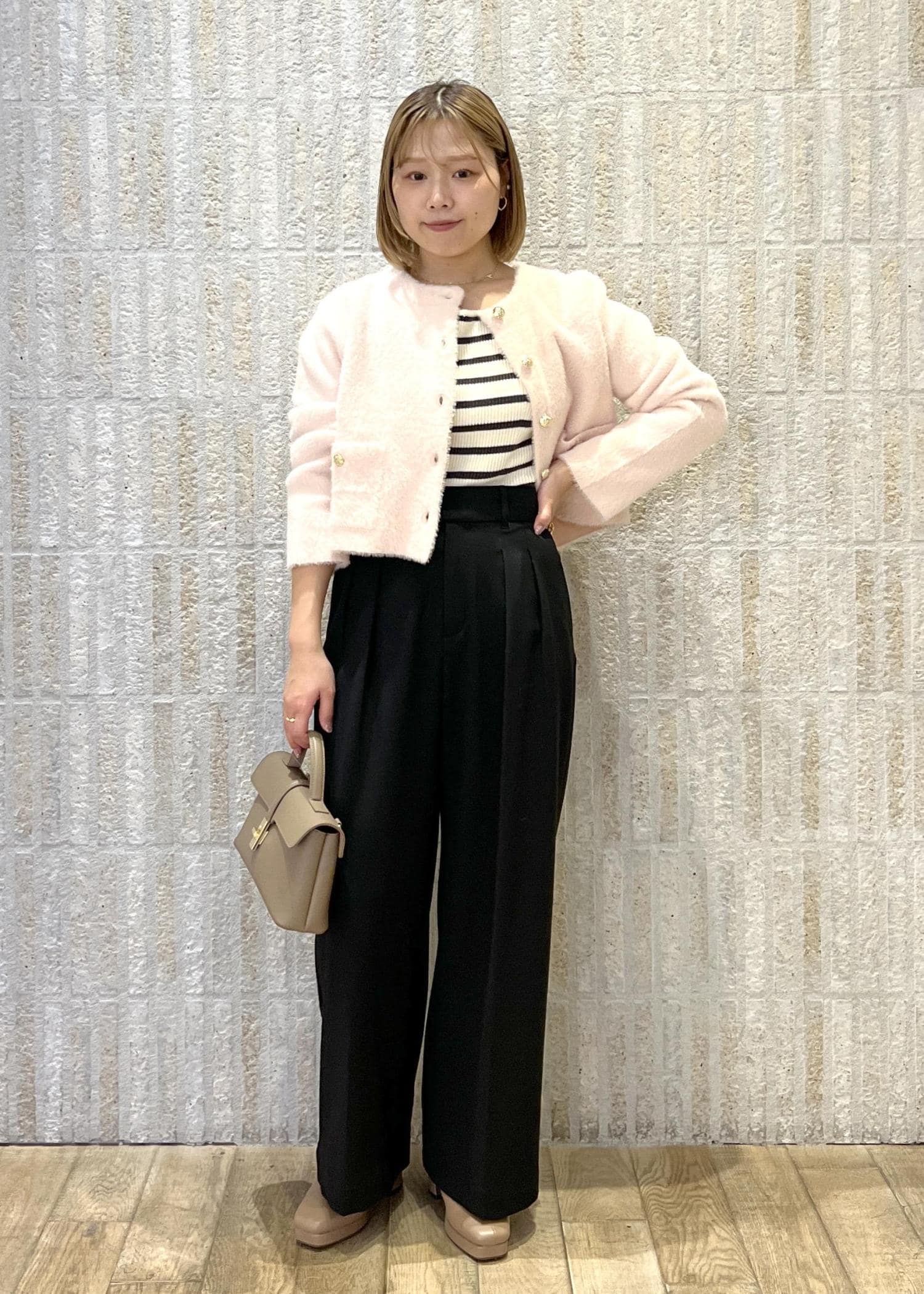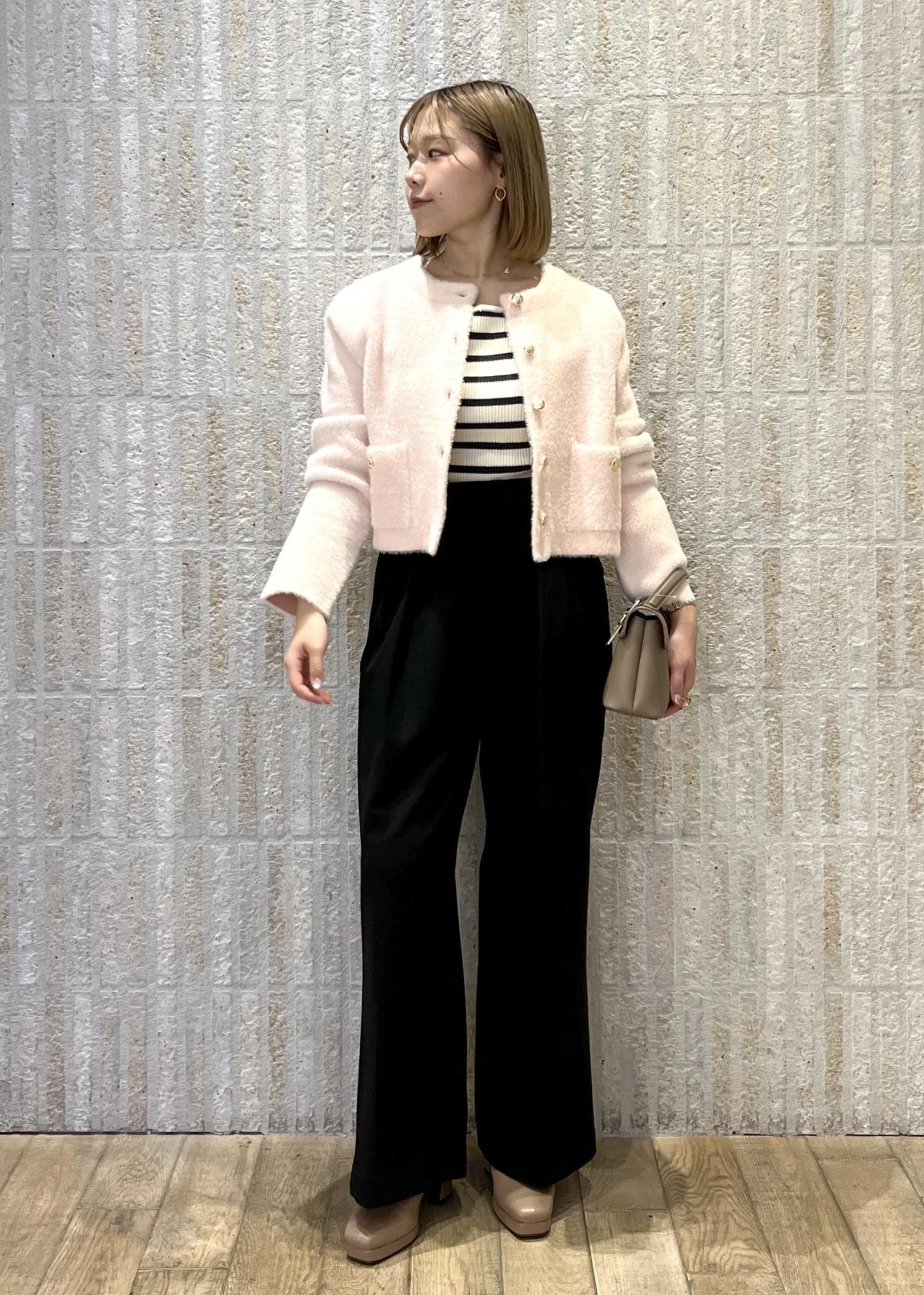 春らしいピンクのカーデを主役に