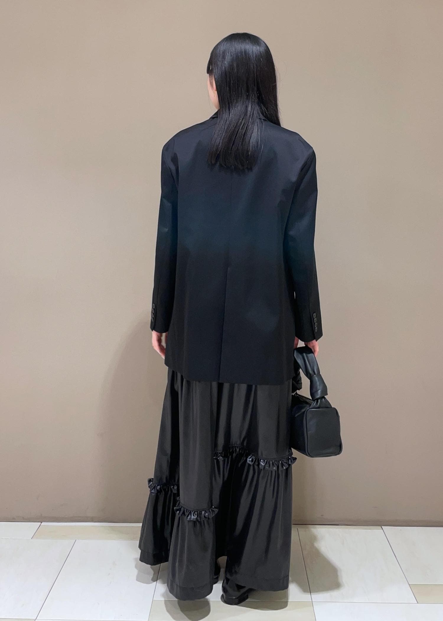 ADAM ET ROPÉ FEMMEシルキーリラックスジャケットブラック / 36¥29,700レビュー肩パッドが入っていないので、自分の肩のラインに沿って綺麗に落ちてくれます!ジャケットなのに華奢見え◎厚地かつ光沢感もあるので、一枚でさまになります◎