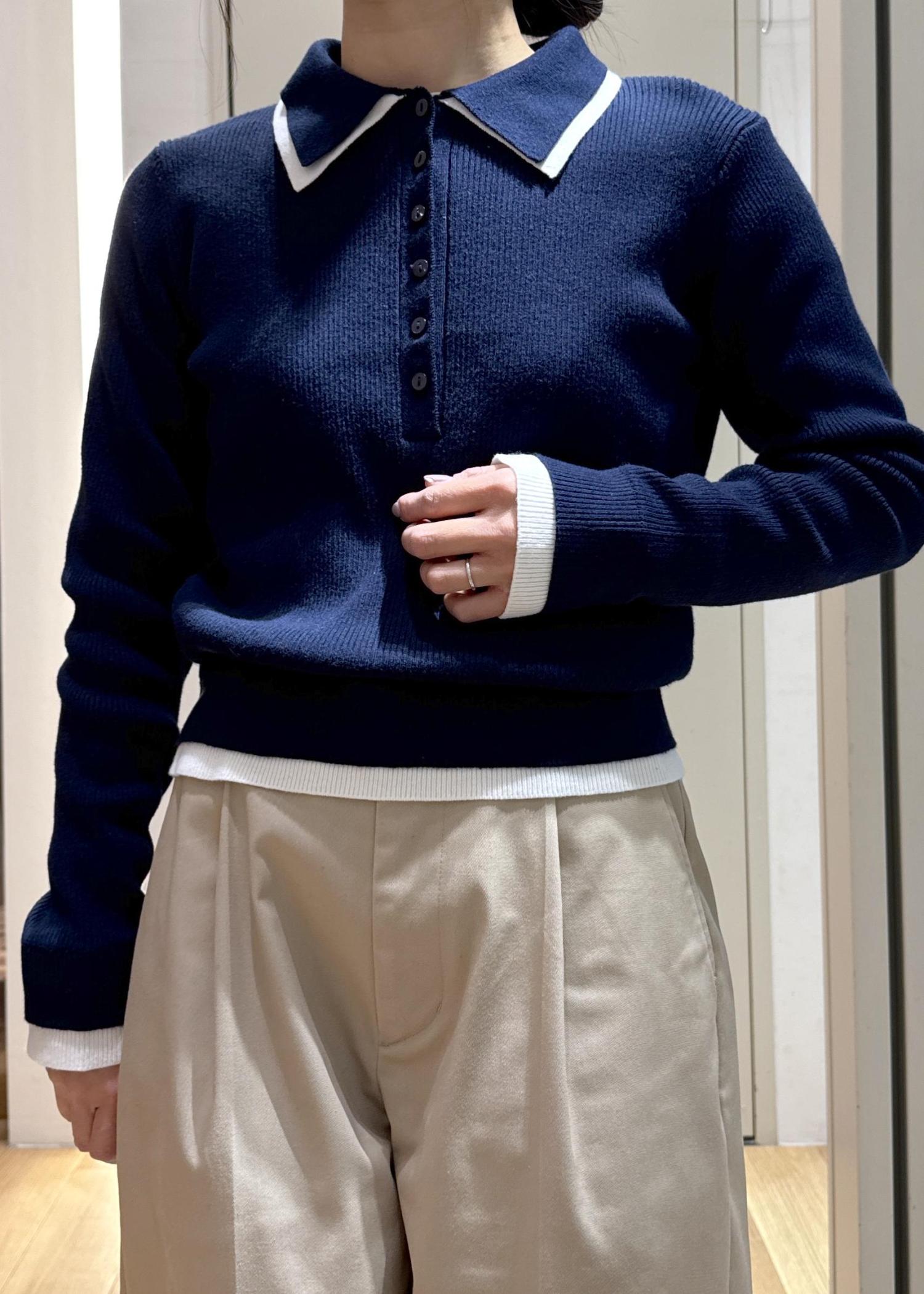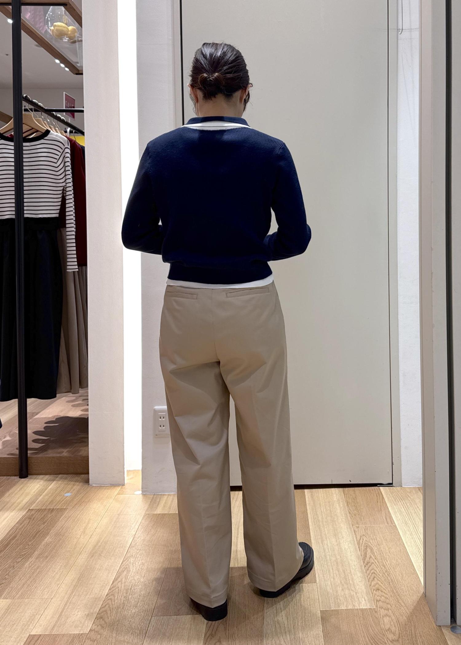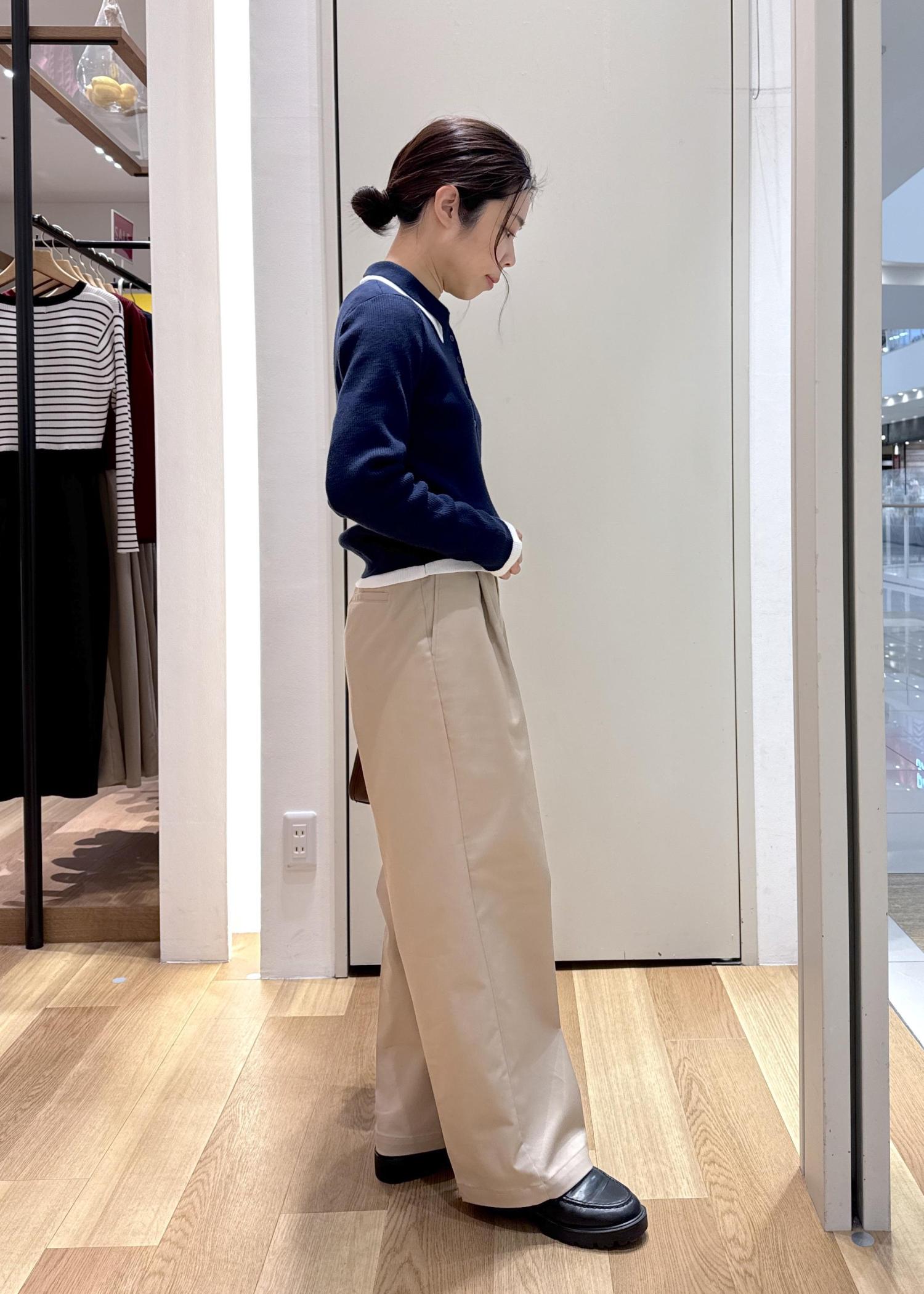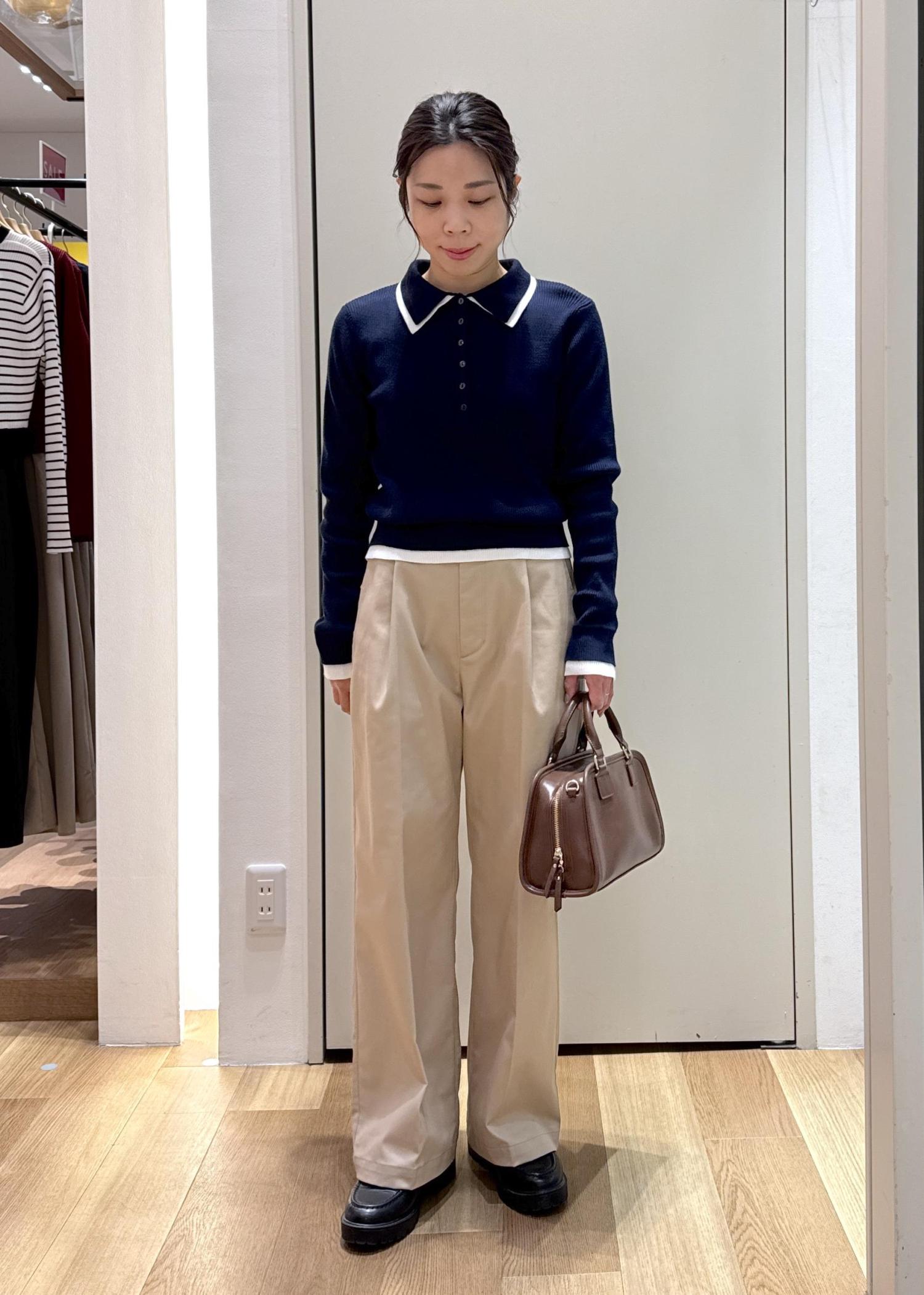重ね着したようなデザインが可愛いポロニットにチノパンツを合わせて大人カジュアルなコーディネートにしてみました!