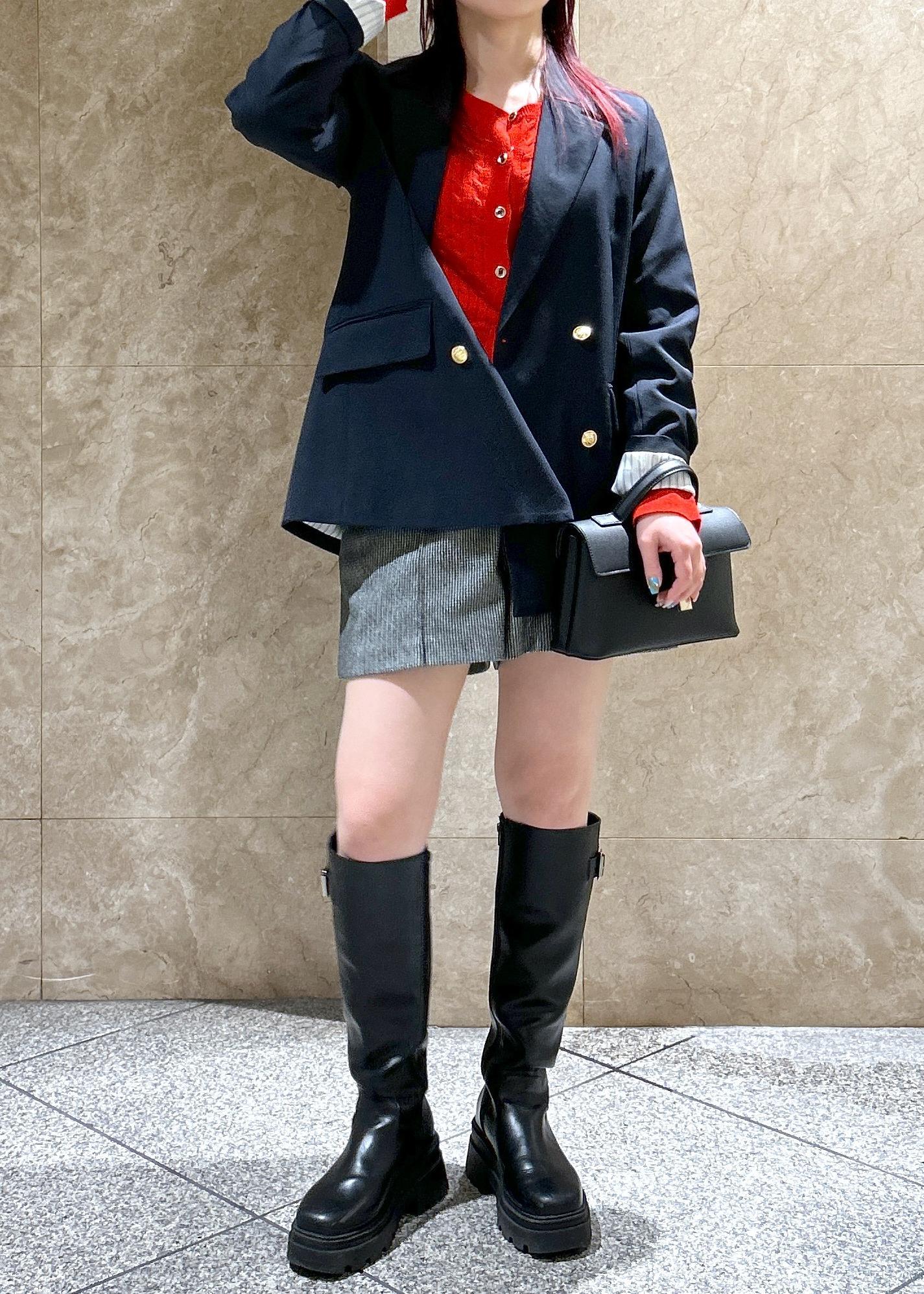 着丈が短めなのでボトムスを選ばず、バランスよく着ていただけます。