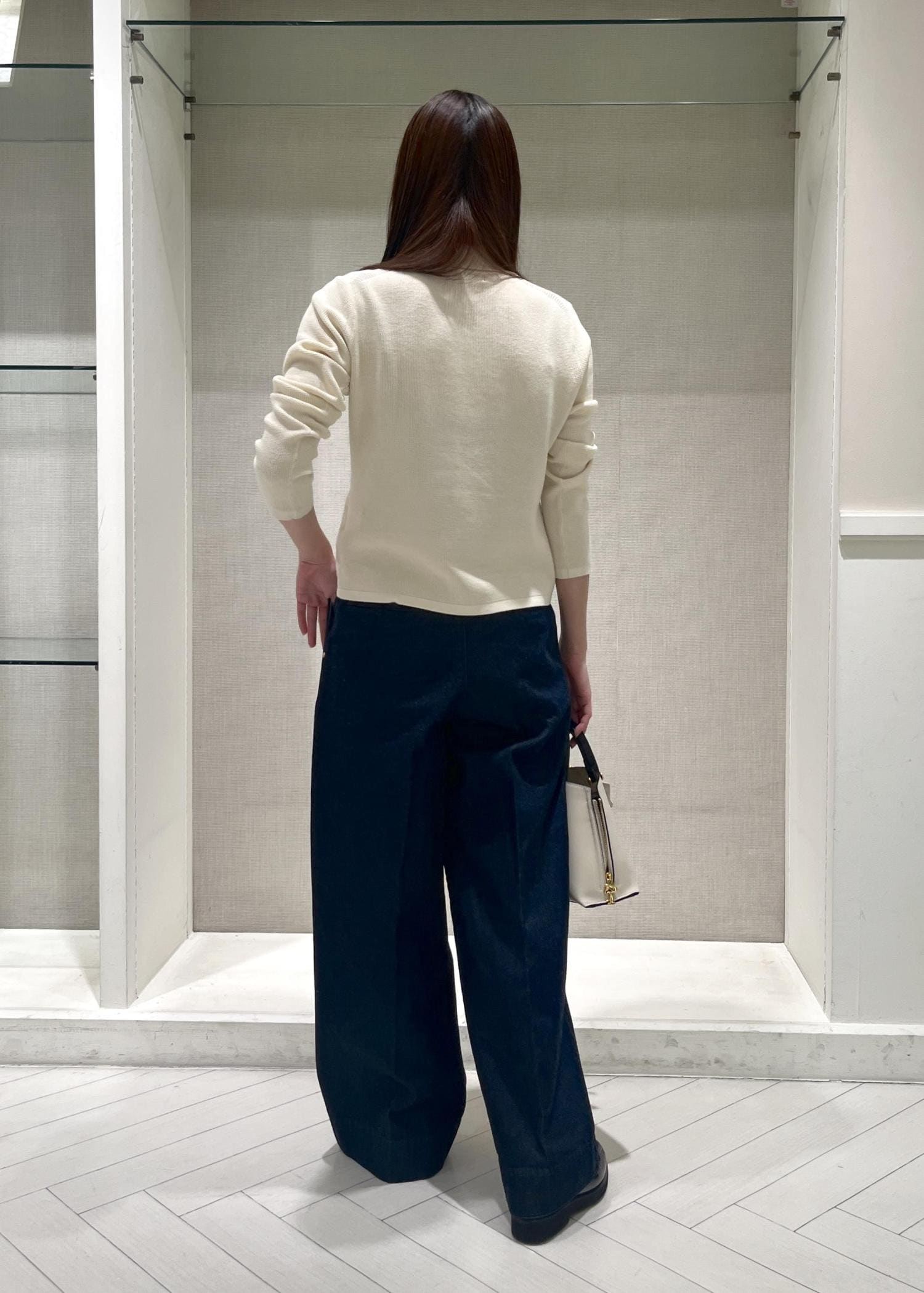 身幅の広がりが少なくコンパクトなシルエットです。普段36サイズを着用の方でもオーバー過ぎないデザインなのでおすすめです。