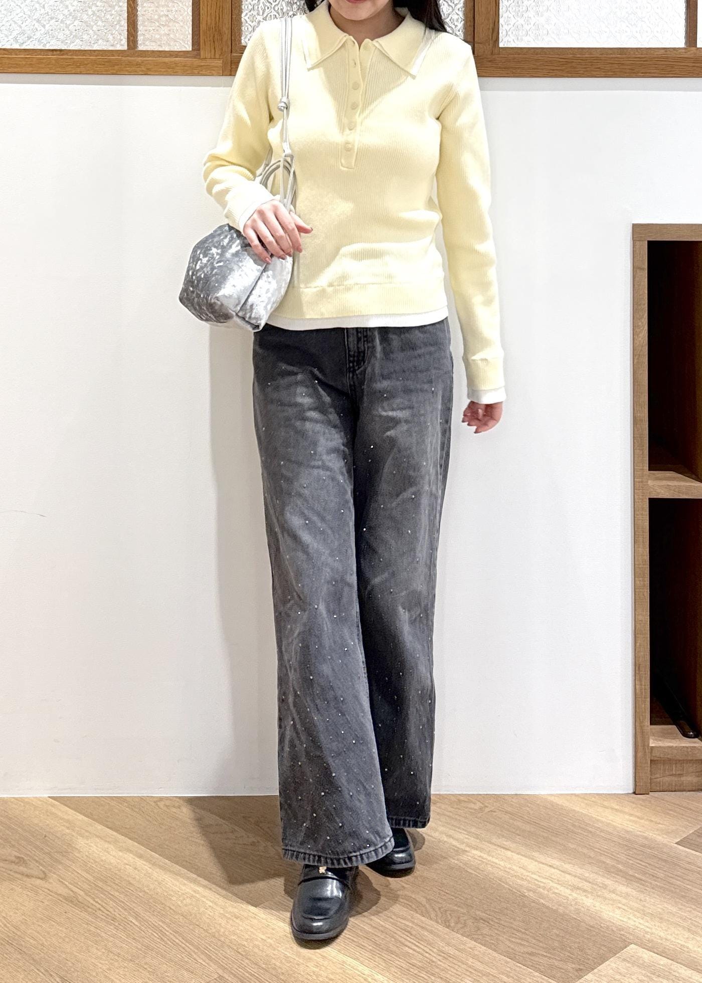 ボトムはブラックデニムを合わせて、大人らしい印象に。