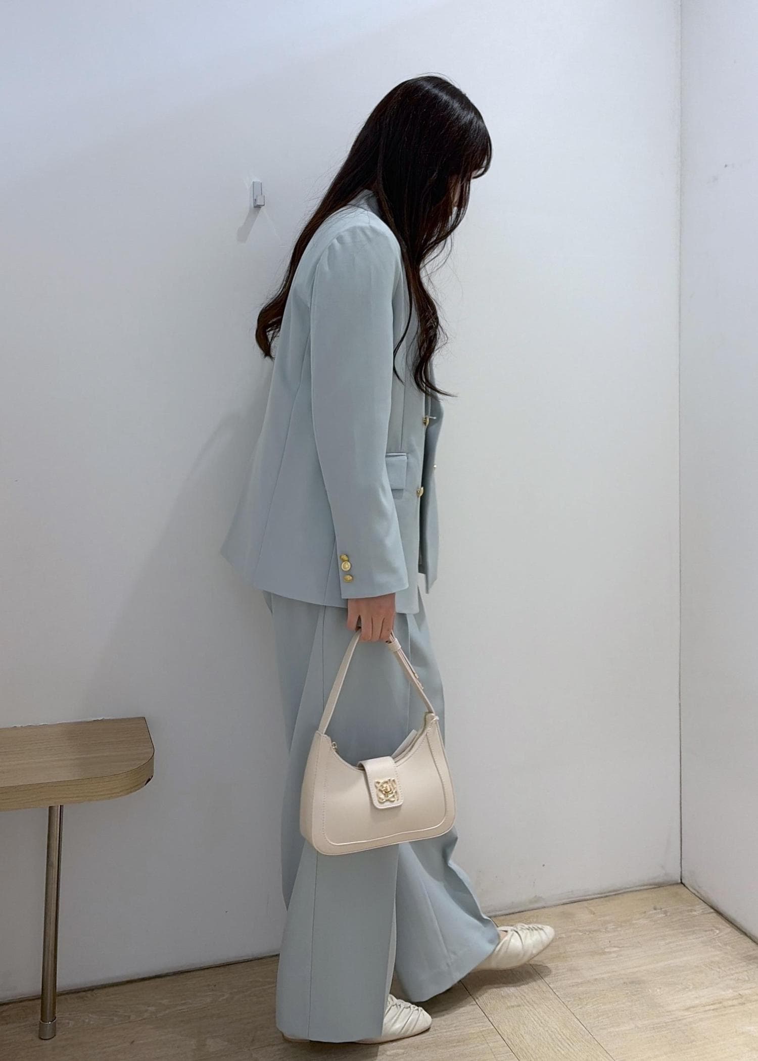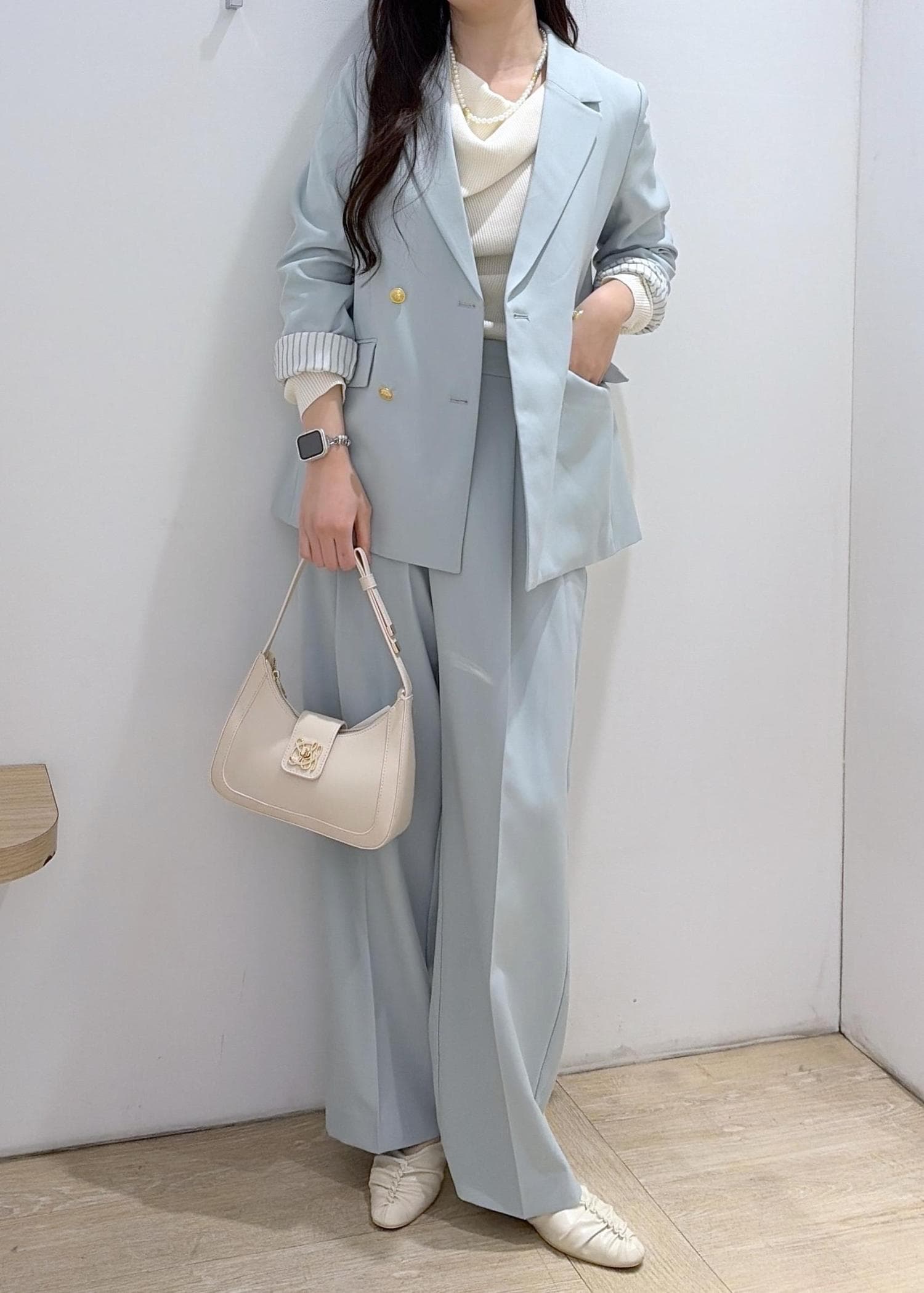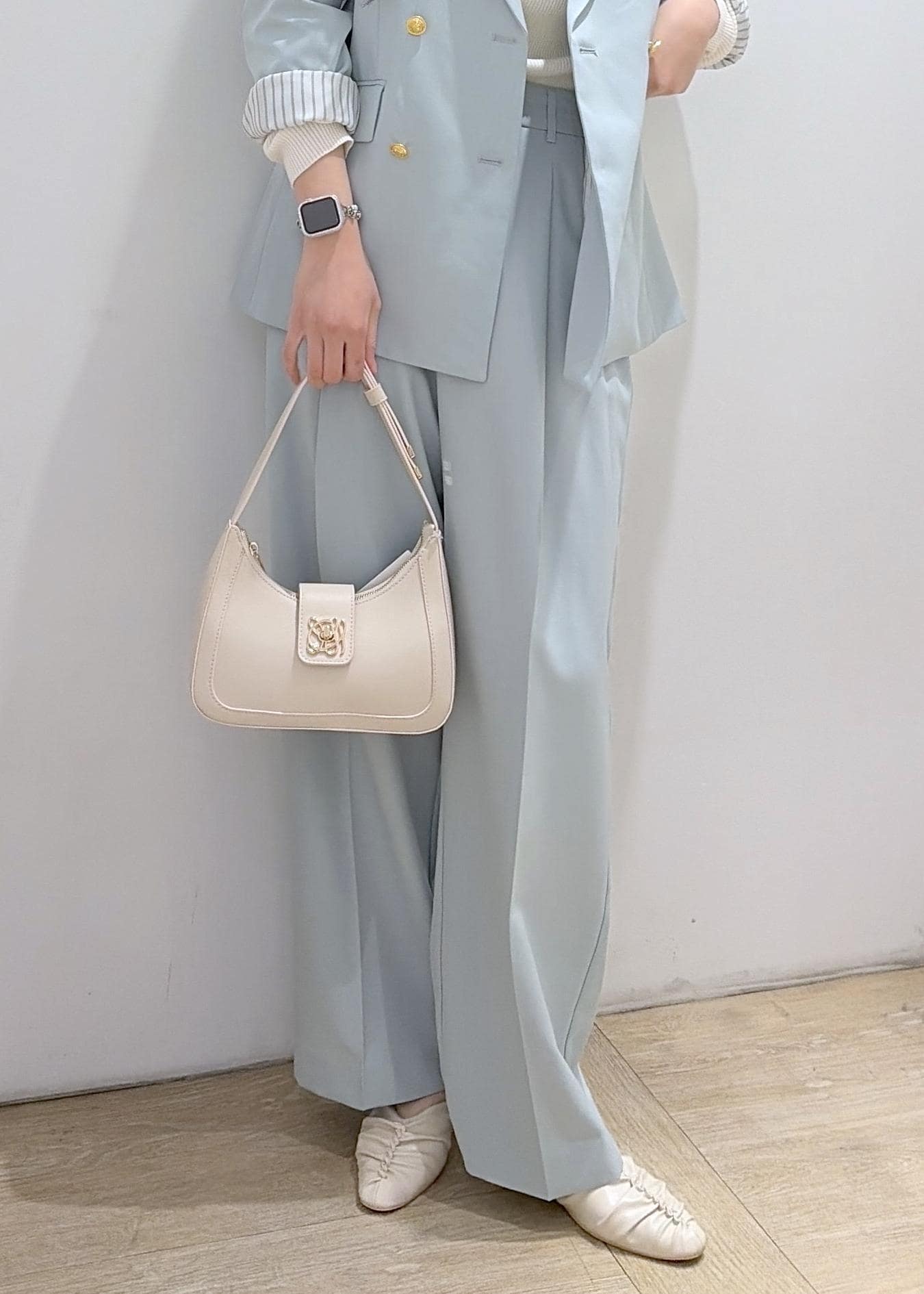 コンパクトでデザインがキレイめのバックなので、どんな系統でも合わせやすい◎ -