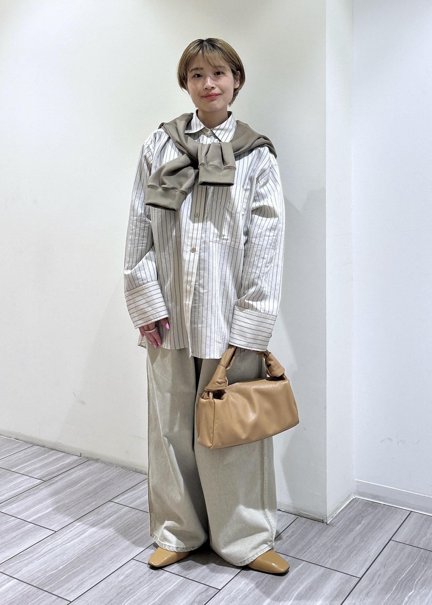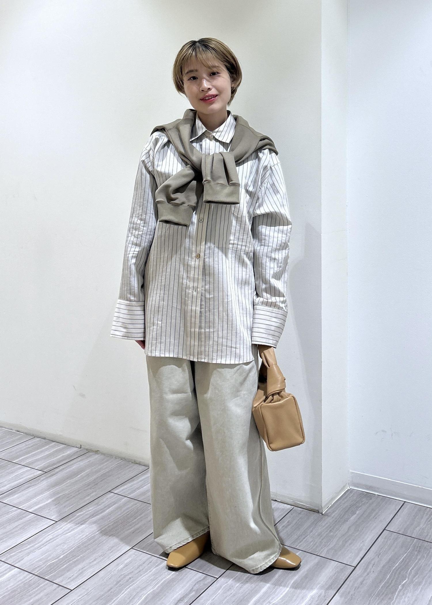 NEW!EMOELLE【EMOELLE】ドレスデニムパンツ(バイオ加工)ベージュ系 / 34¥24,200レビューワイドですが綺麗めに履けるデニムです!タックが入っていてシルエット良く、脚長効果も◎