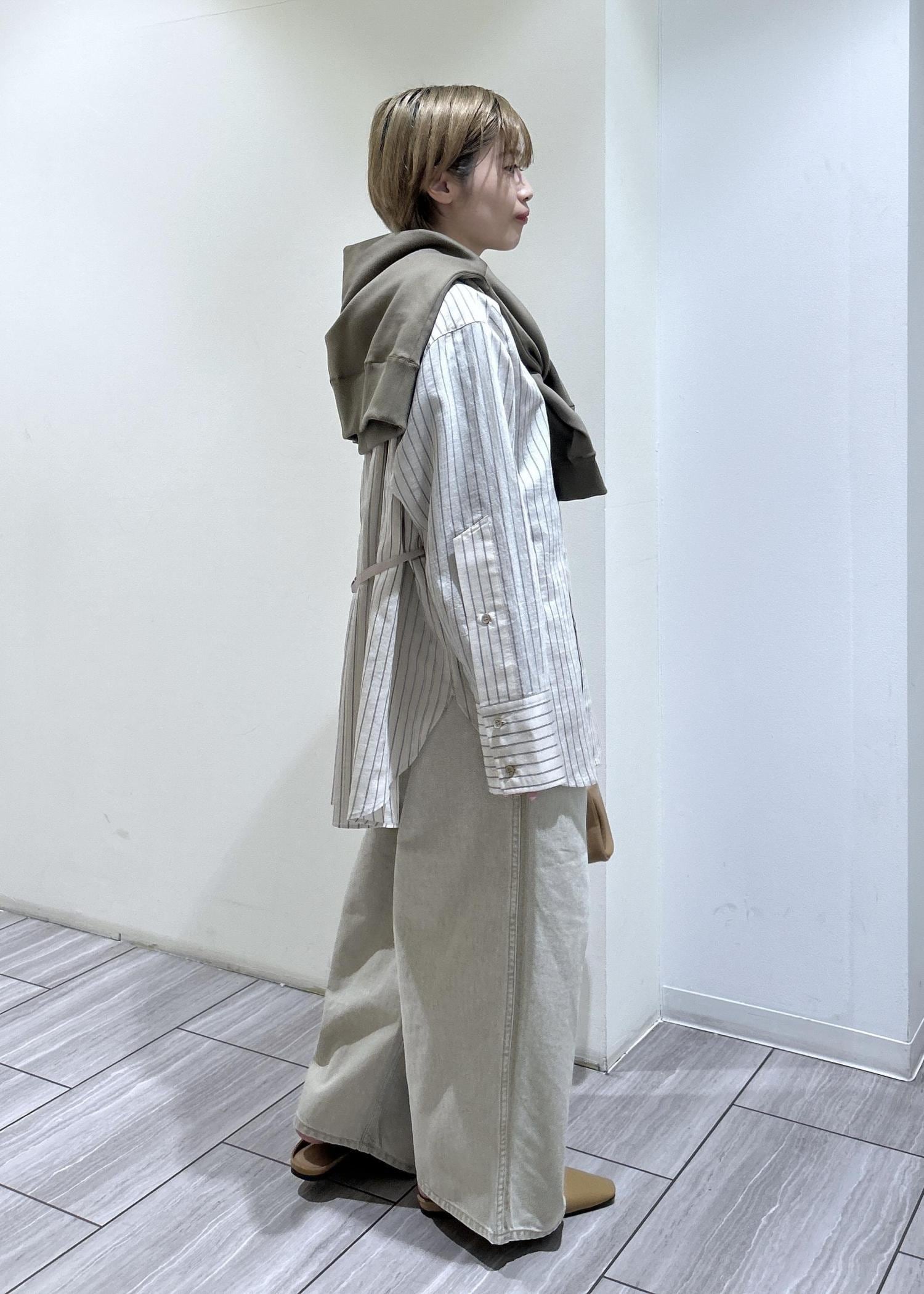 ADAM ET ROPÉ FEMMEバックベルテッドシャツベージュ / F¥18,700レビュー腰回りまで隠れる丈感です!軽めの素材感なので長いシーズン着用できます◎