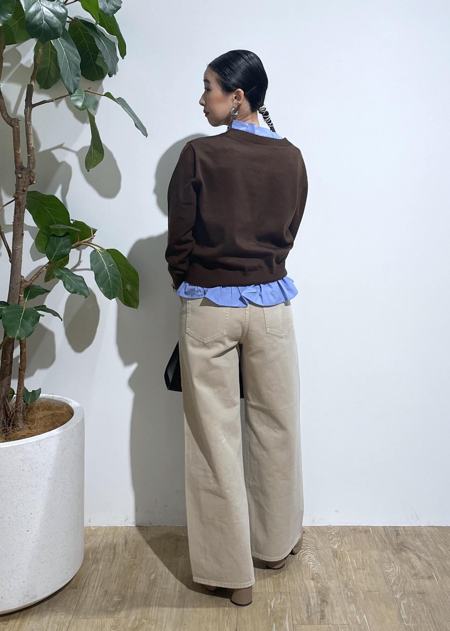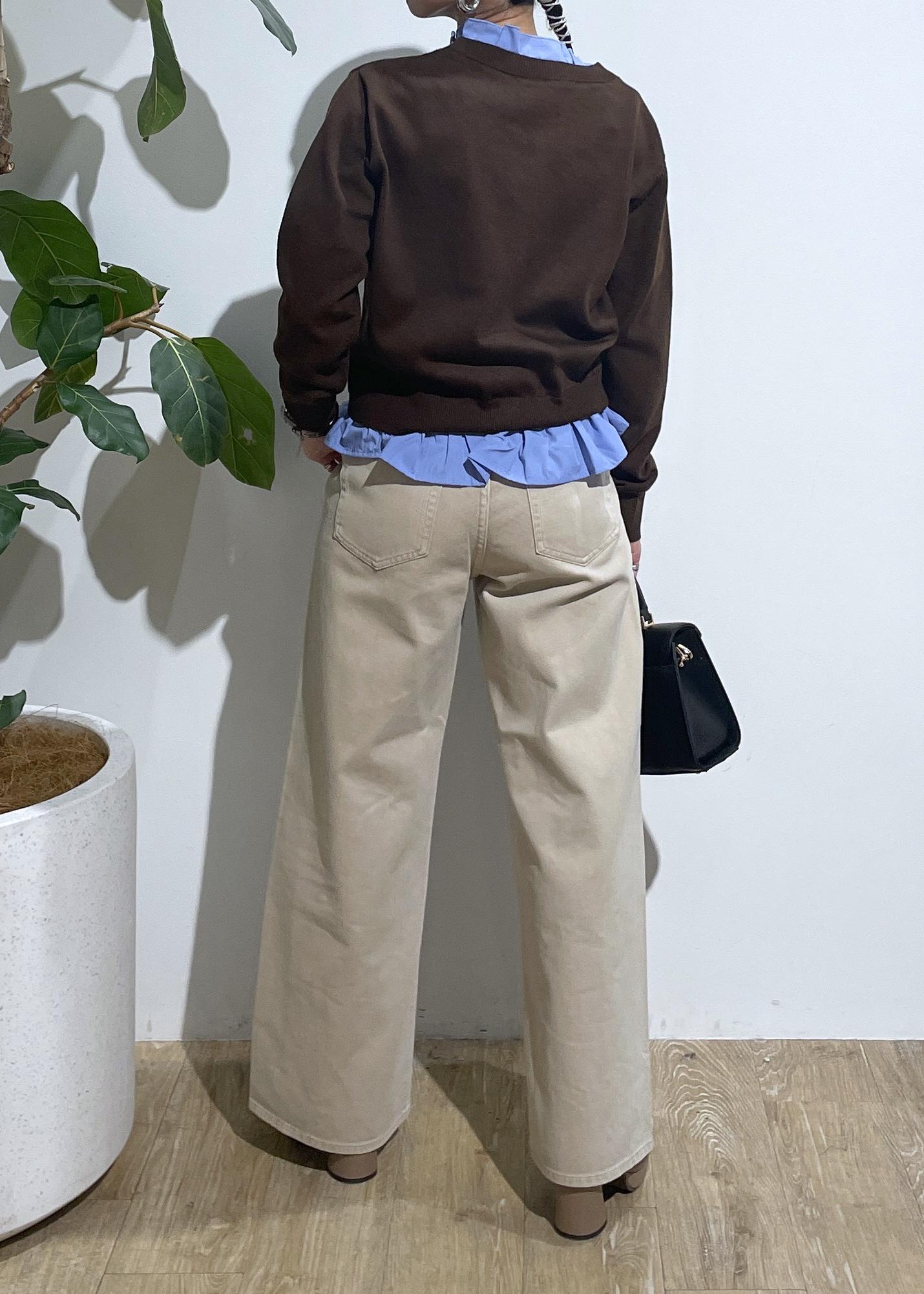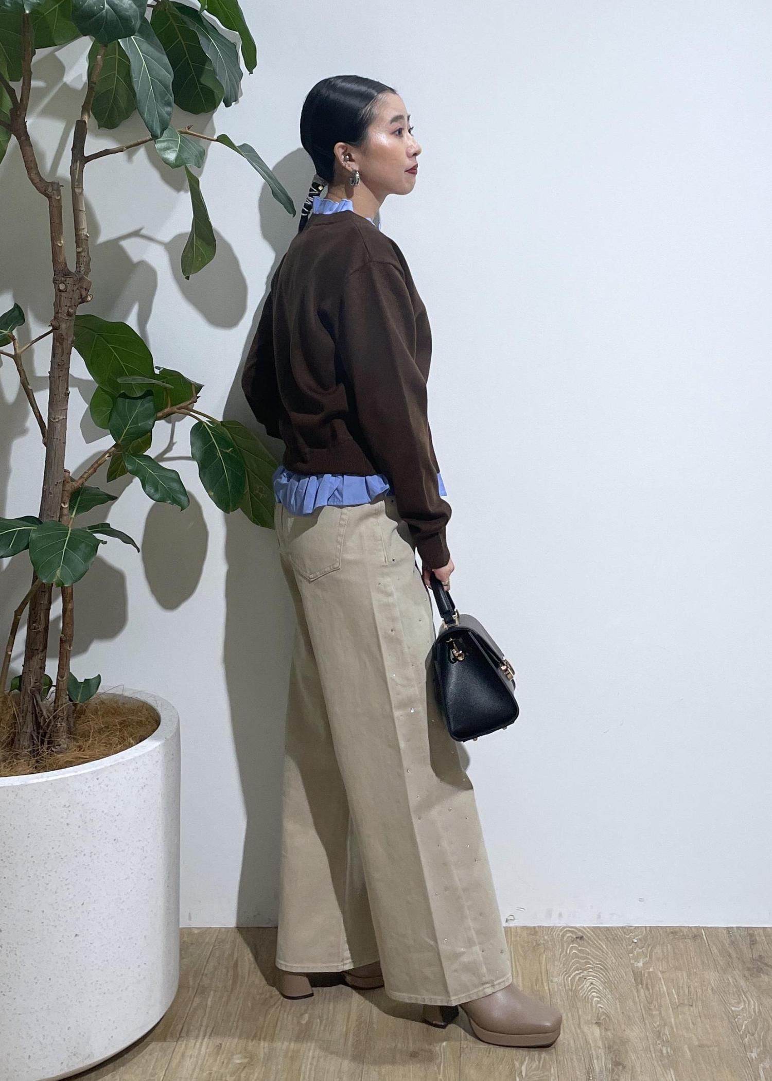 VIS【美得】フリル襟ドッキングニットカーディガントップスダークブラウン / F¥5,929レビューレイヤードスタイルになっているので1枚持っているだけでレイヤードを楽しめます‼︎