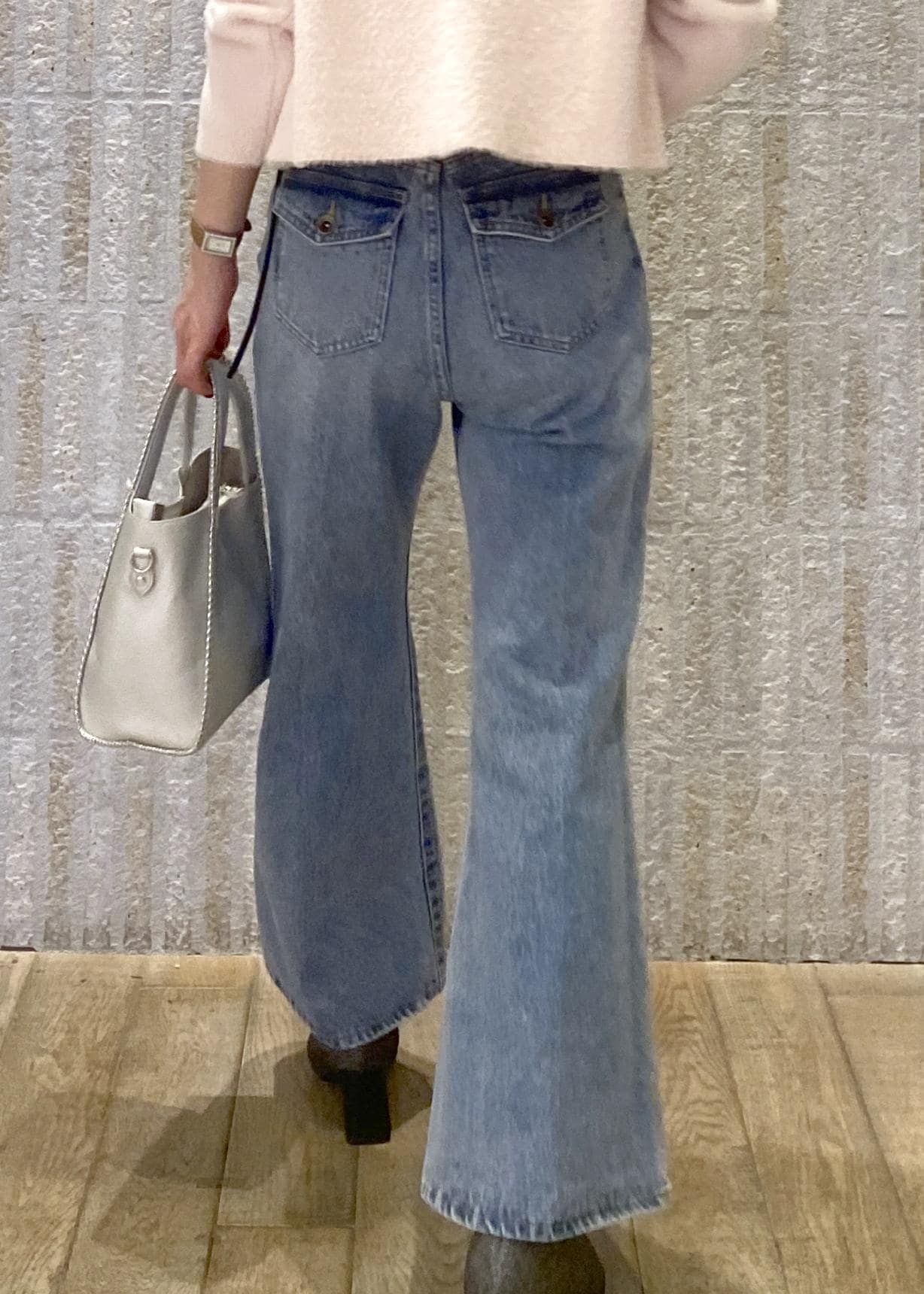 VISフレアシルエットデニムパンツサックス / S¥8,899レビュー程よいフレアが脚を細く長く見せてくれて、スタイルアップ効果大のデニムです!