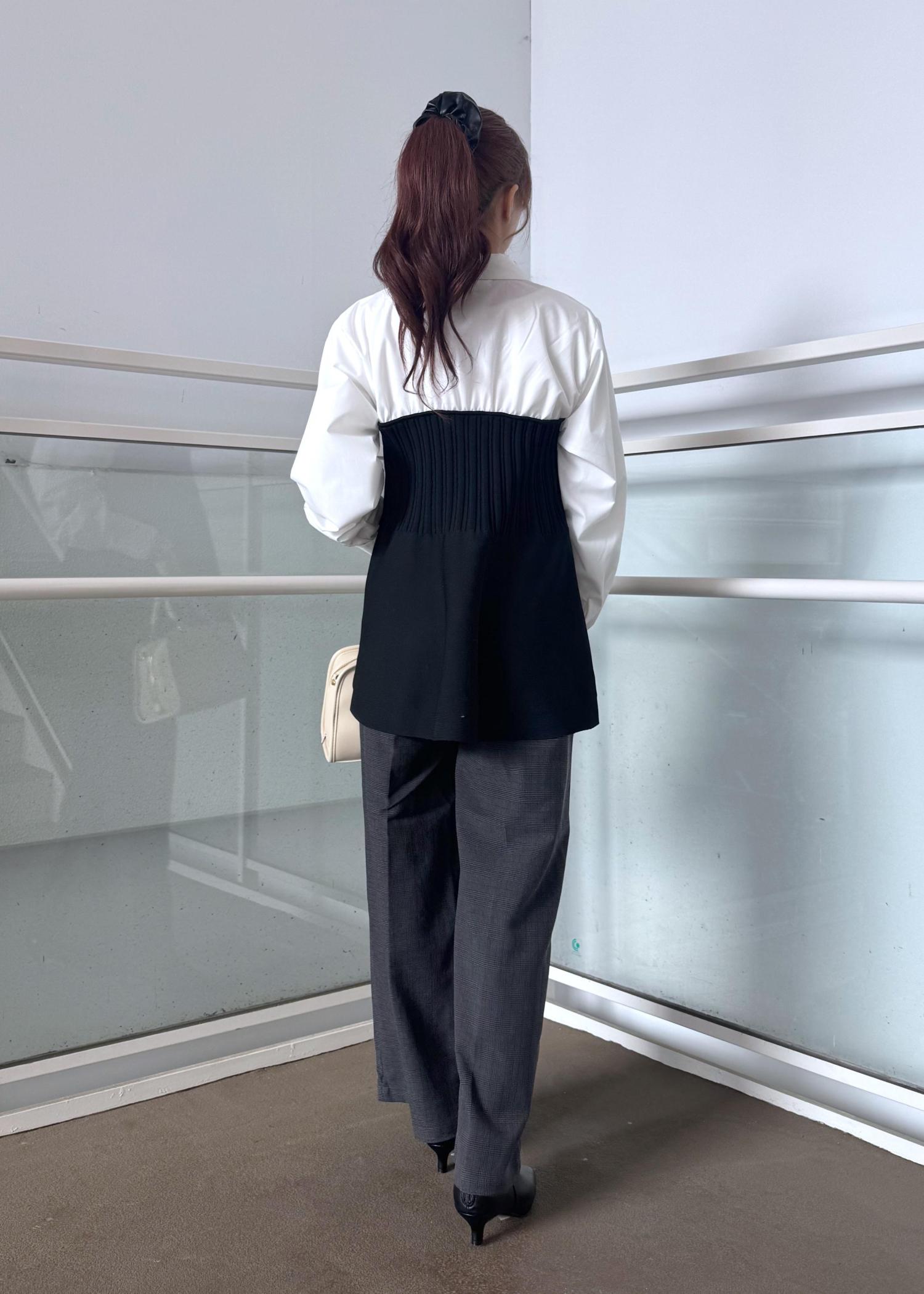 ROPÉ PICNICシャツドッキングペプラムニットブラック / F¥5,995レビューニットの部分がかなり収縮性があるので、全体的にゆったり着用できました。