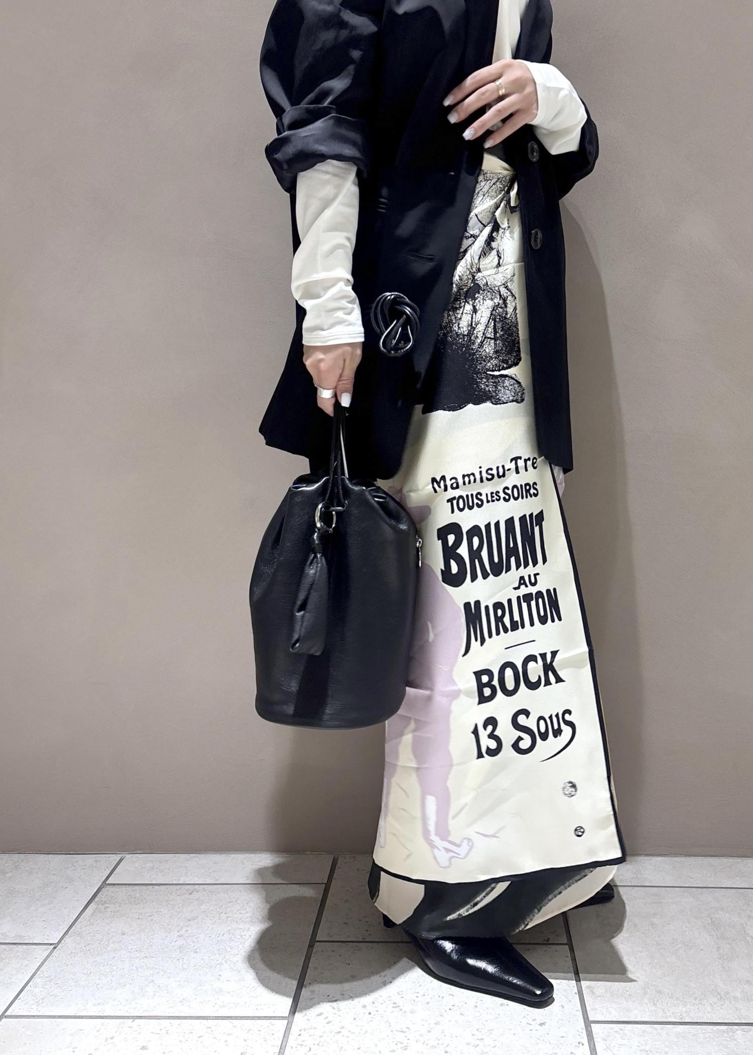 大柄模様が柄の特定がしづらいので、フェミニンでもアニマルでもないテイストに縛られずに活用できます◎