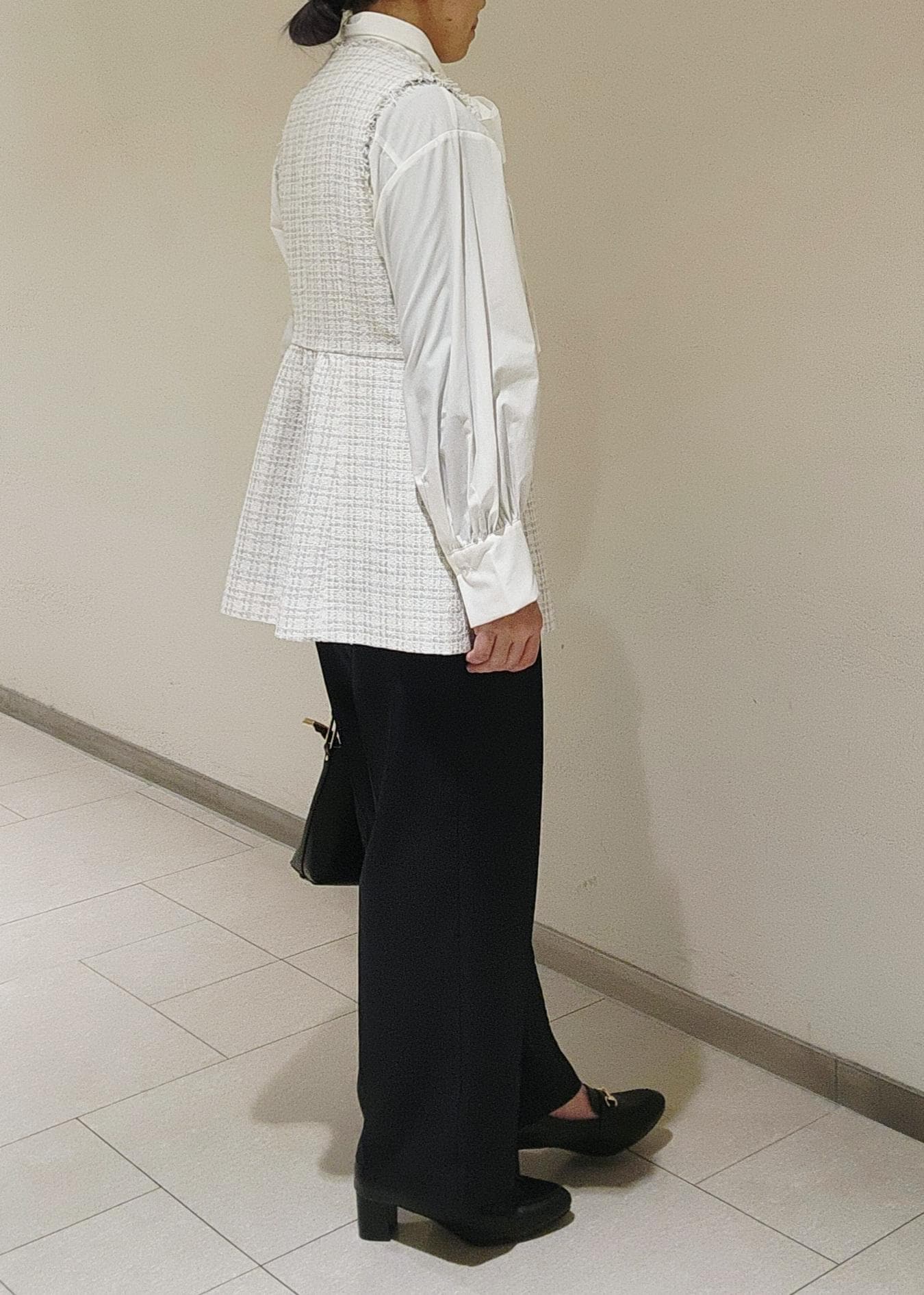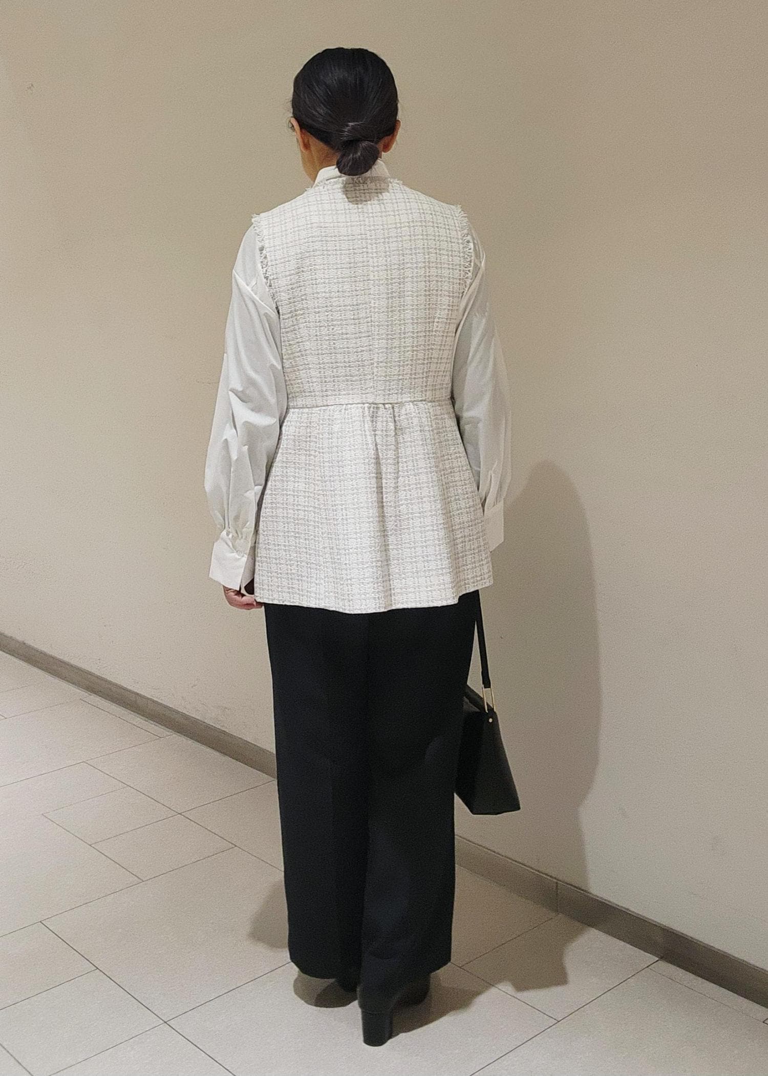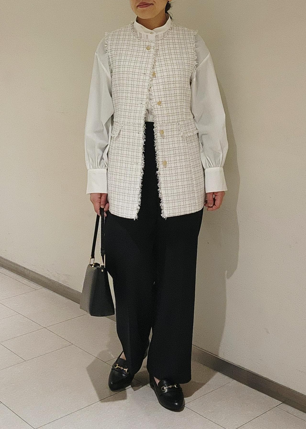 立体感のあるツイード素材で、羽織るだけで華やかさUP◎
