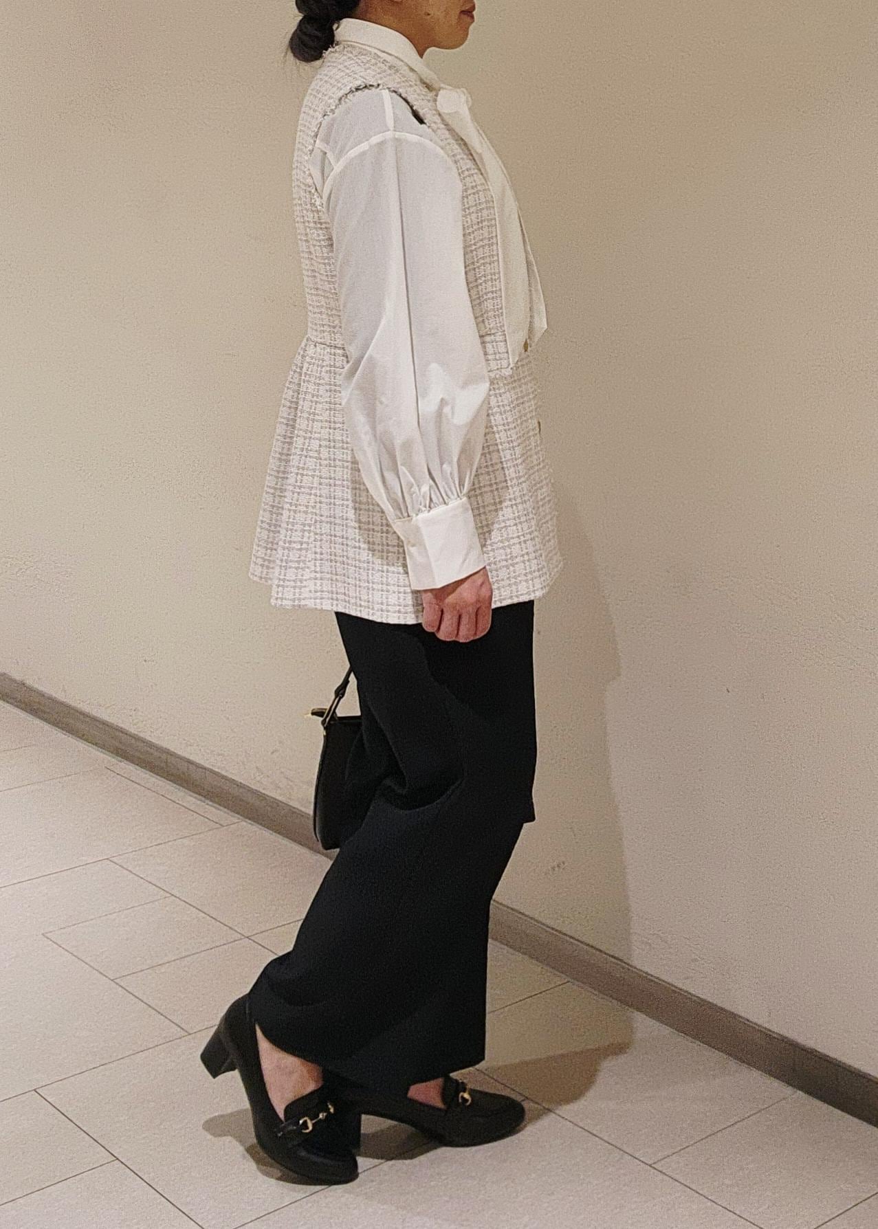 ブラウス合わせでセレモニーに、ニットやデニム合わせでカジュアルと幅広いシーンに活躍します。