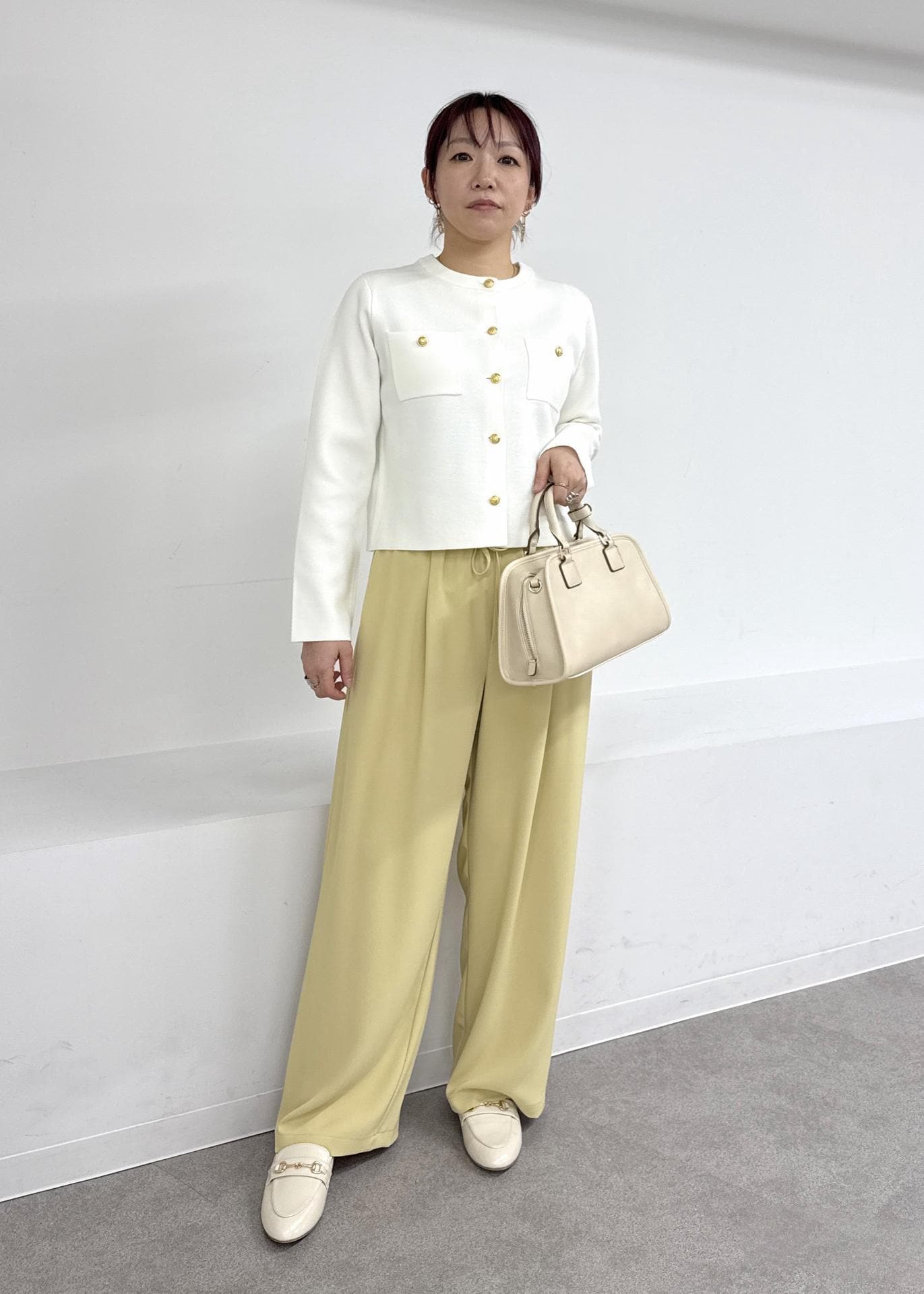 小物もアイボリーでまとめて統一感を目指しました!
