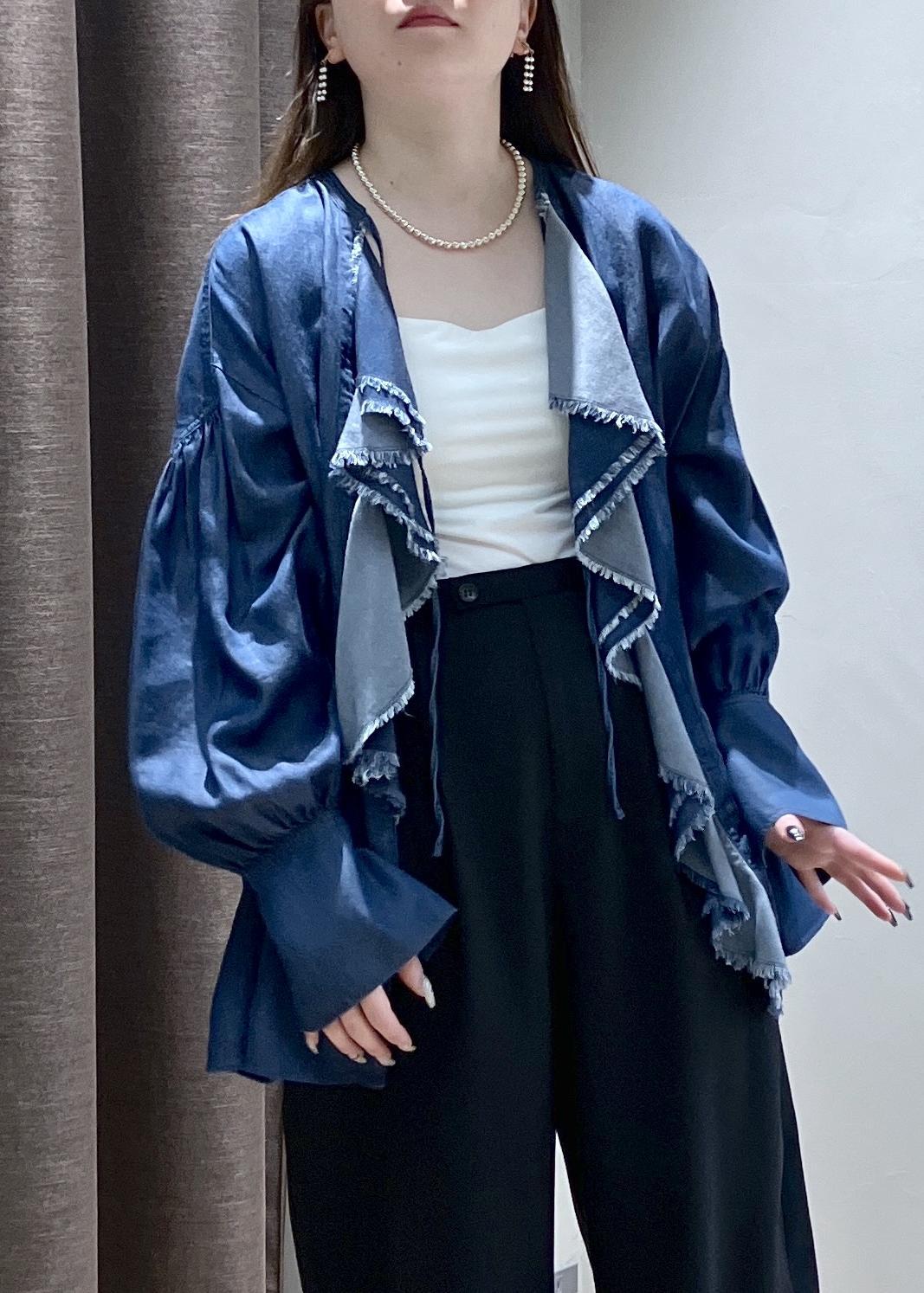 SALON adam et ropéデニムライクラッフルフリルブラウスブルー系 / F¥23,100レビュー【サイズ感】