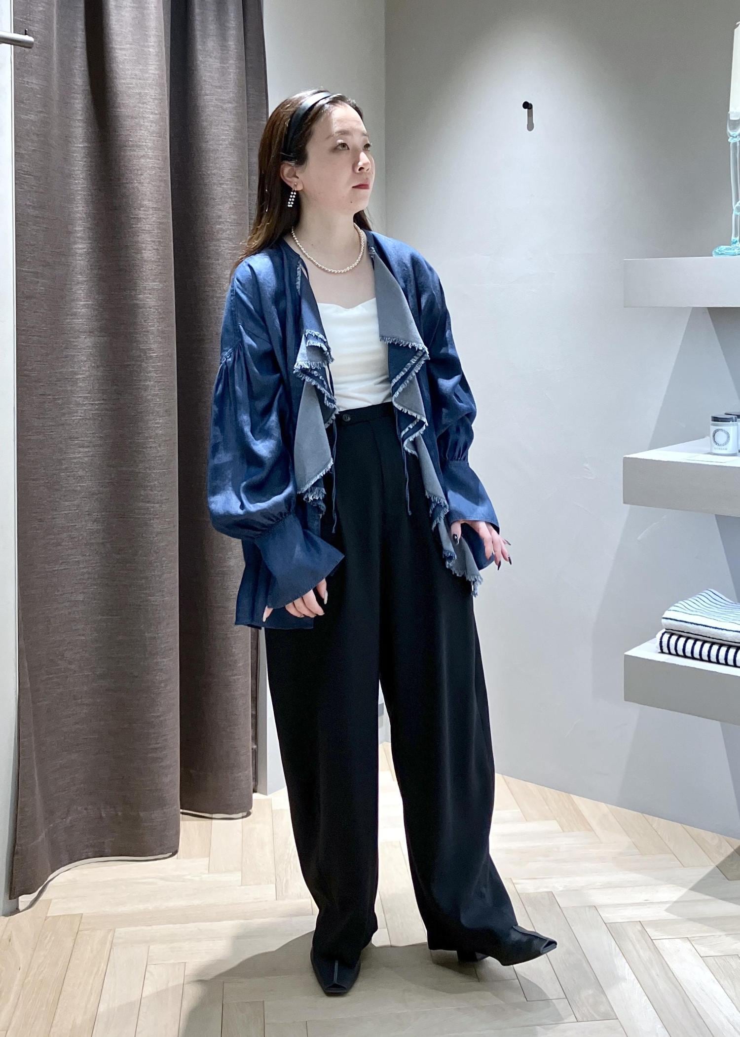 デニムライクの生地感なので、前フリルでも甘くなりすぎずに着て頂けます。 -