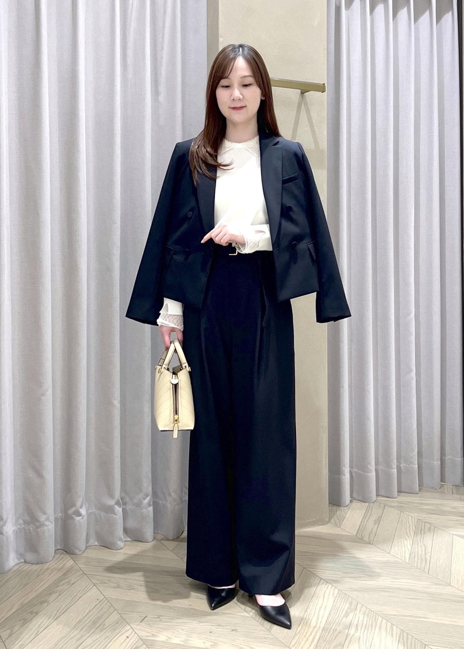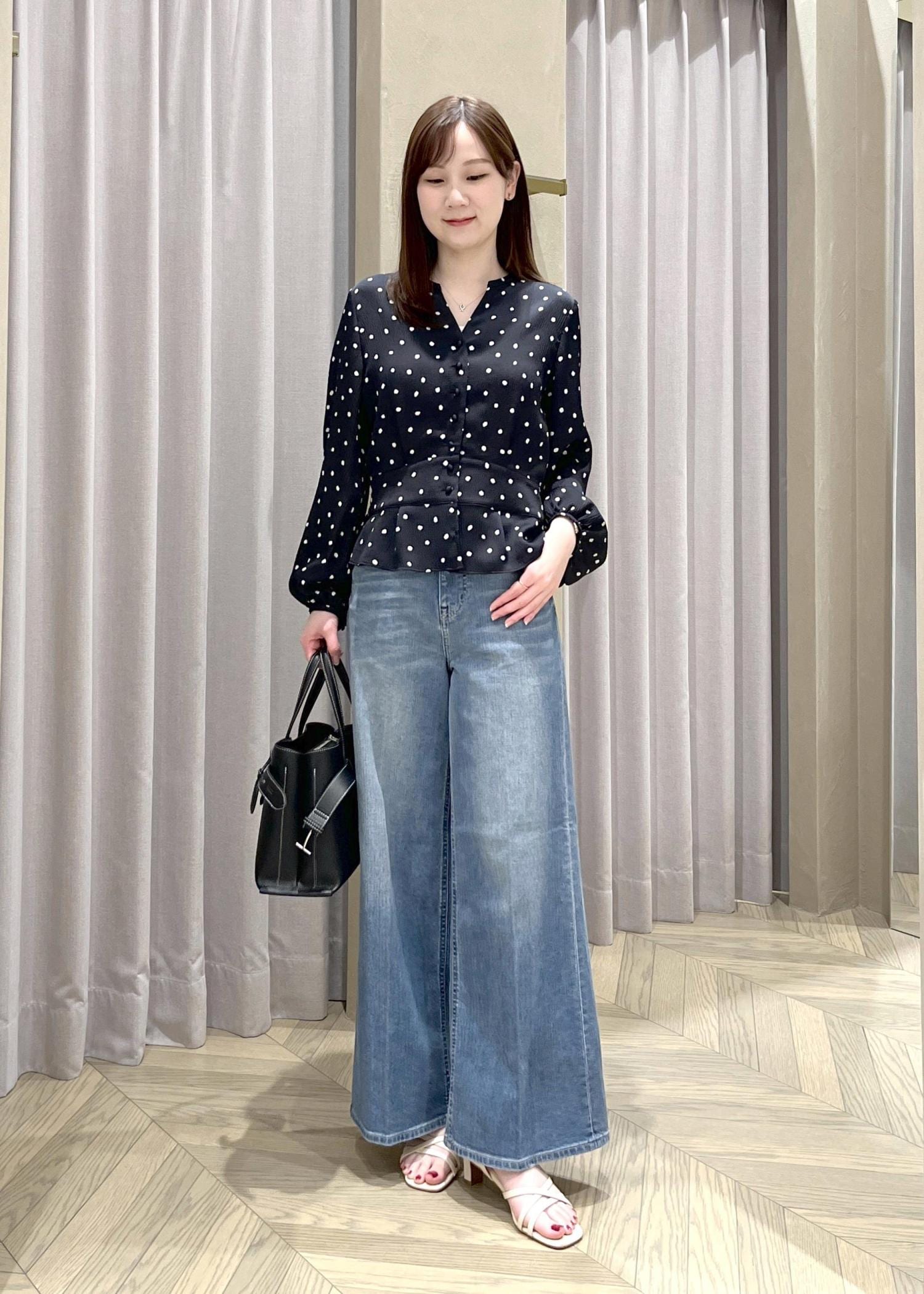 ROPÉトリアセツイル ワンタックイージーワイドパンツ(デニムライク)/イージーケア・セットアップ対応ブラック / 36¥19,250レビュー【着丈】