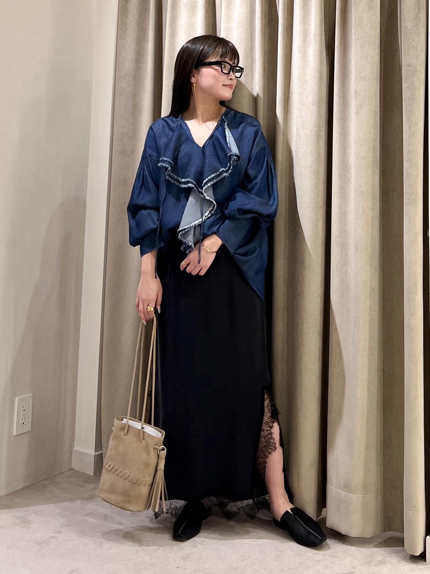 SALON adam et ropéデニムライクラッフルフリルブラウスブルー系 / F¥23,100レビュー前開きの羽織にも出来る胸元の