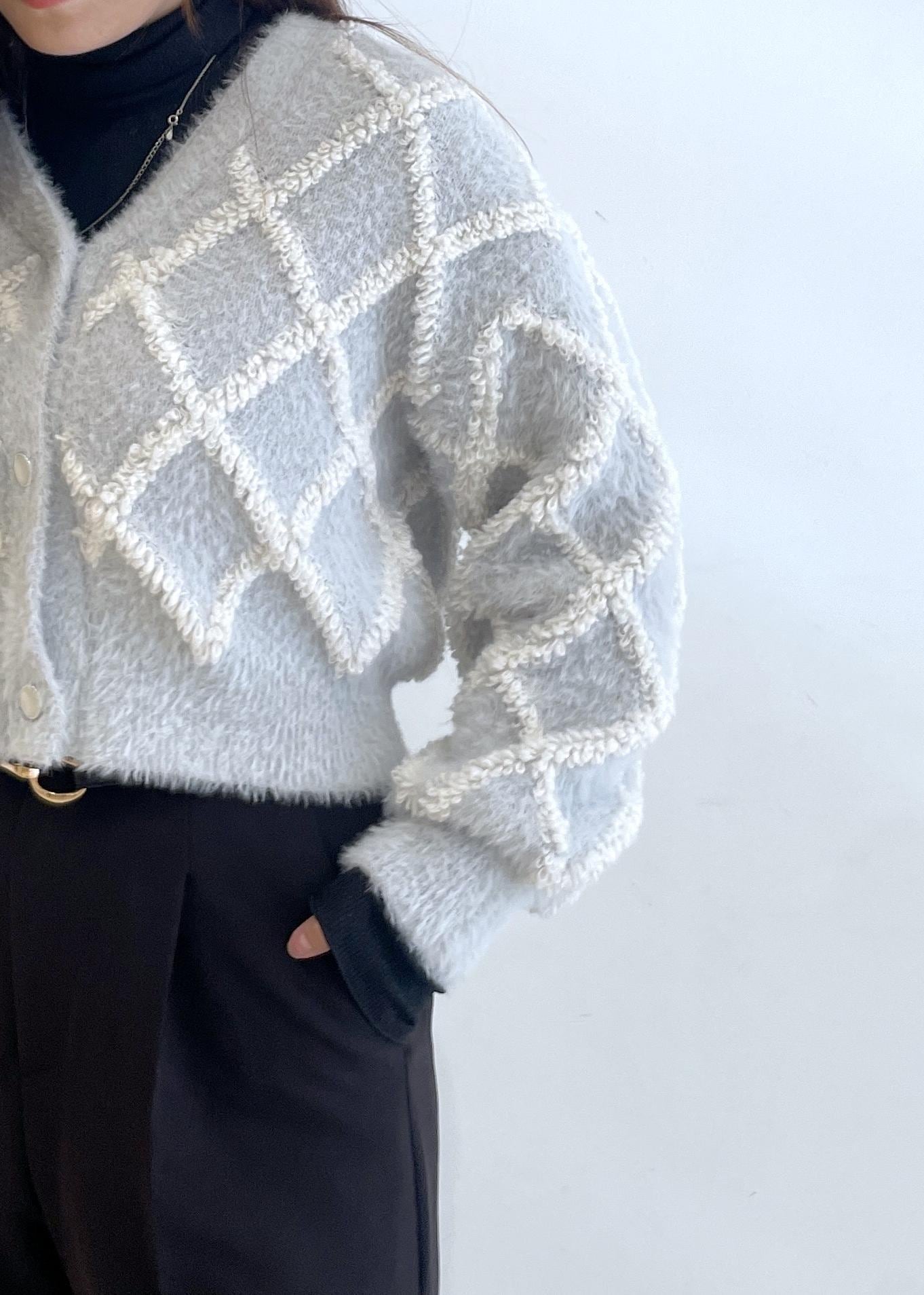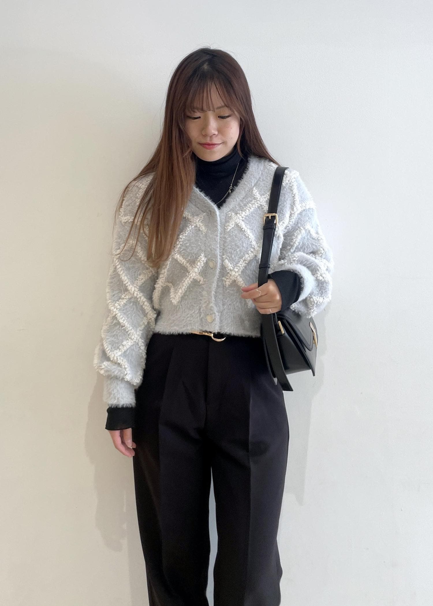 アウトレット 2BUY10%OFFROPÉ PICNICダイヤチェック柄ループフェザーカーディガンサックス / F¥3,897レビューボリュームのあるカーディガンですが、短丈なのでハイウエストボトムと合わせて着るとよりスタイルアップします!