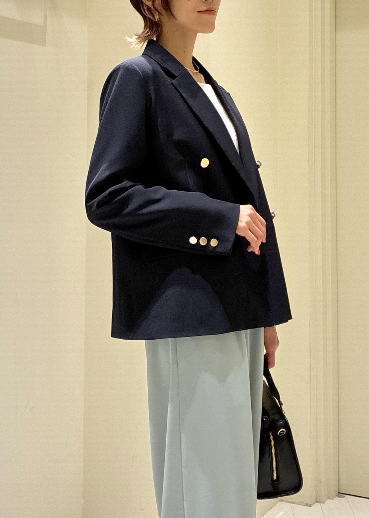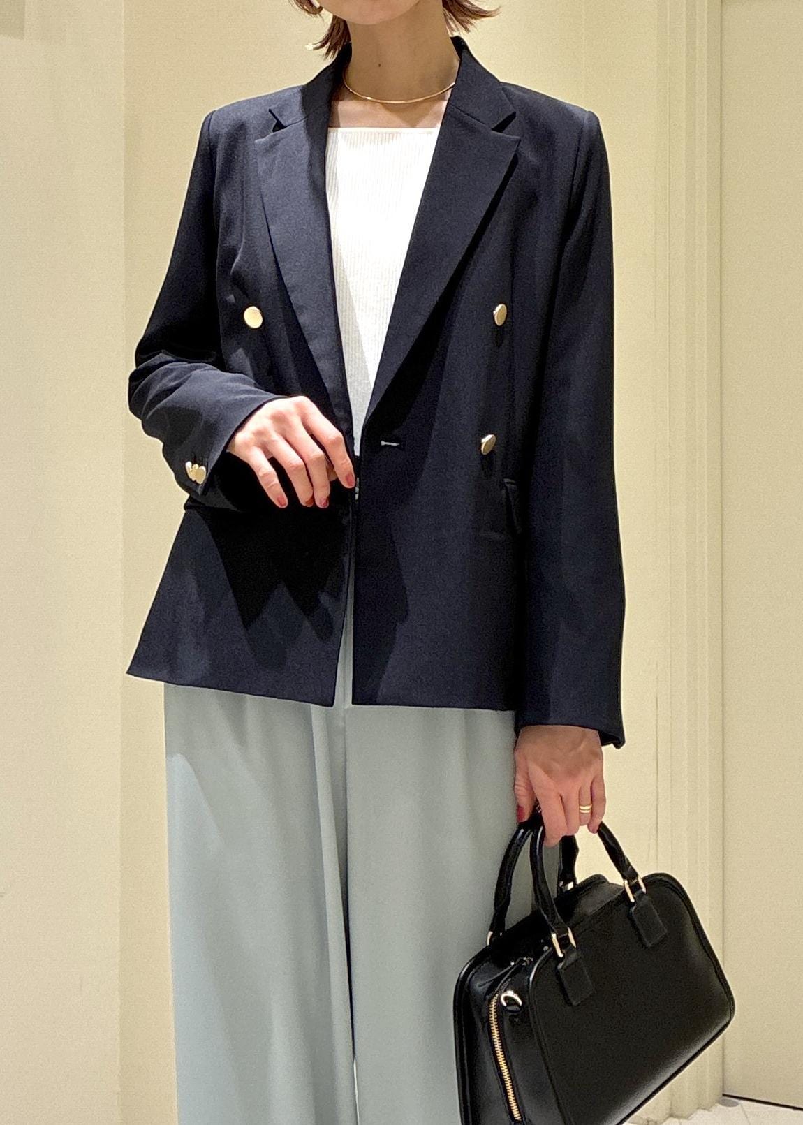 金釦がアクセントになり、カジュアルダウンもしやすいです。軽くサラッとした素材感で肌馴染み・着心地も良いです。 -