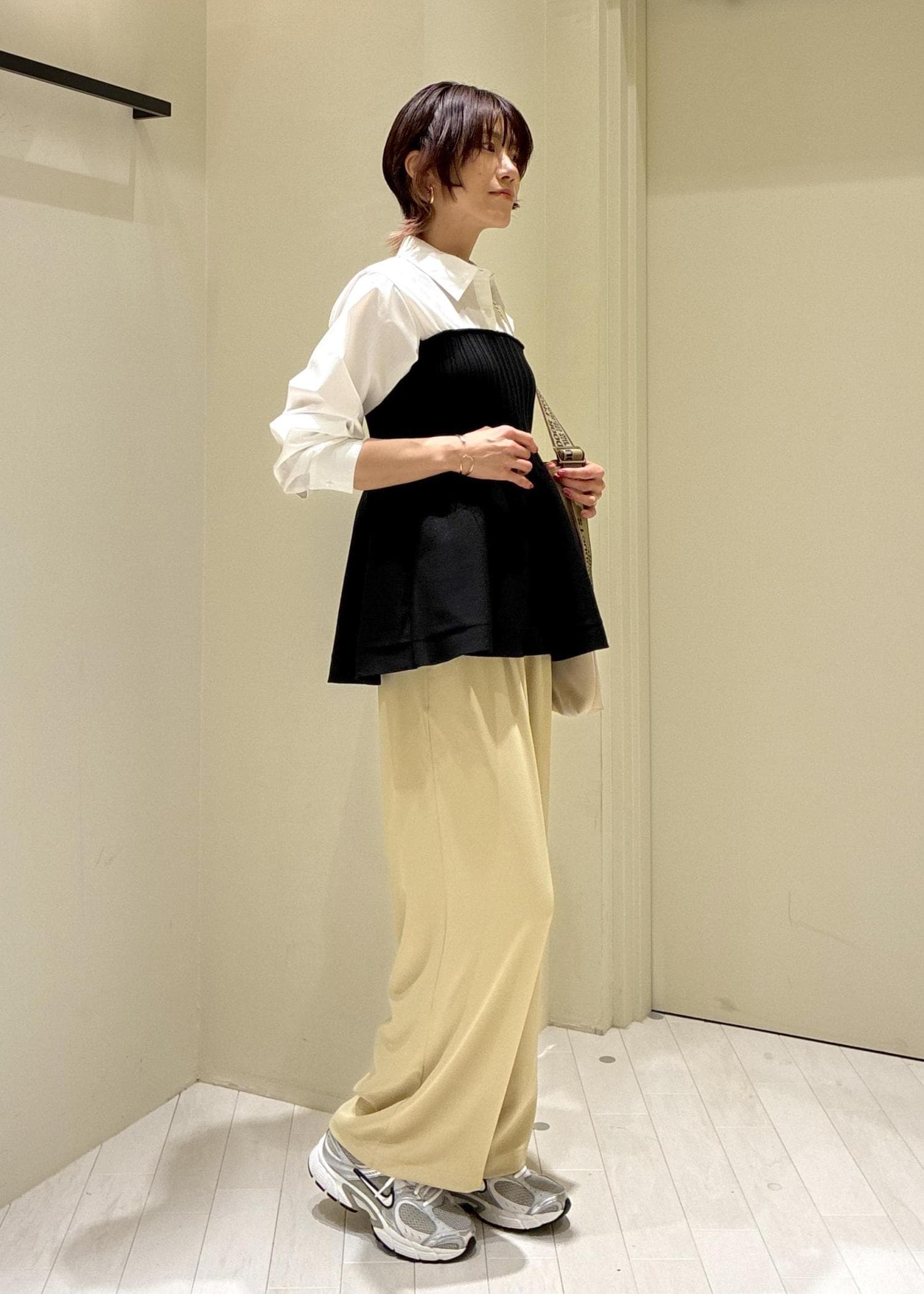 ROPÉ PICNICシャツドッキングペプラムニットブラック / F¥5,995レビューニットとシャツのドッキングデザインで、軽やかな春先取りスタイルに。ニット部分は伸縮性があり、タイト過ぎないのでボディラインを拾わず着やすいです。