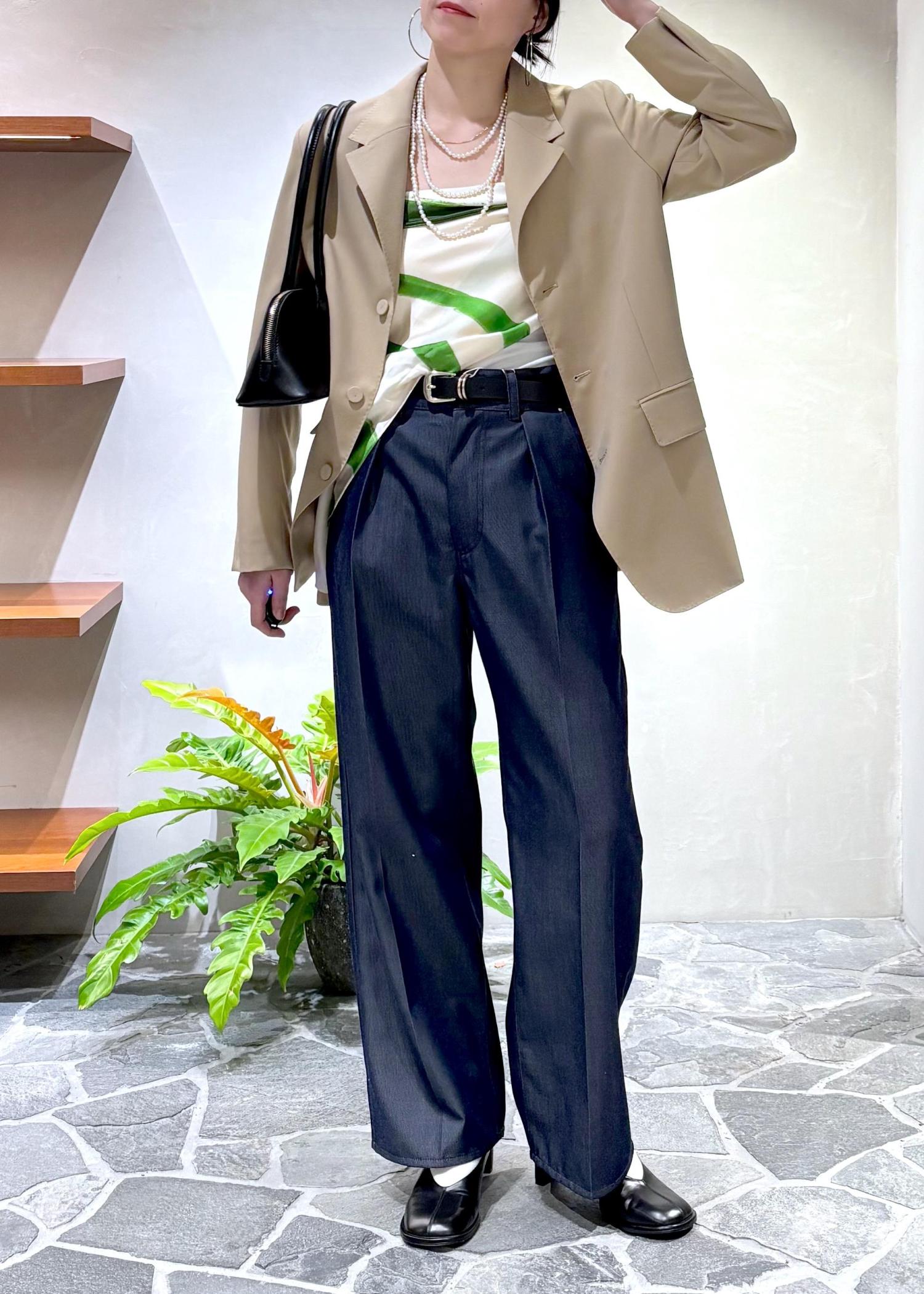 デニムとスラックスの中間アイテムというのがピッタリです!