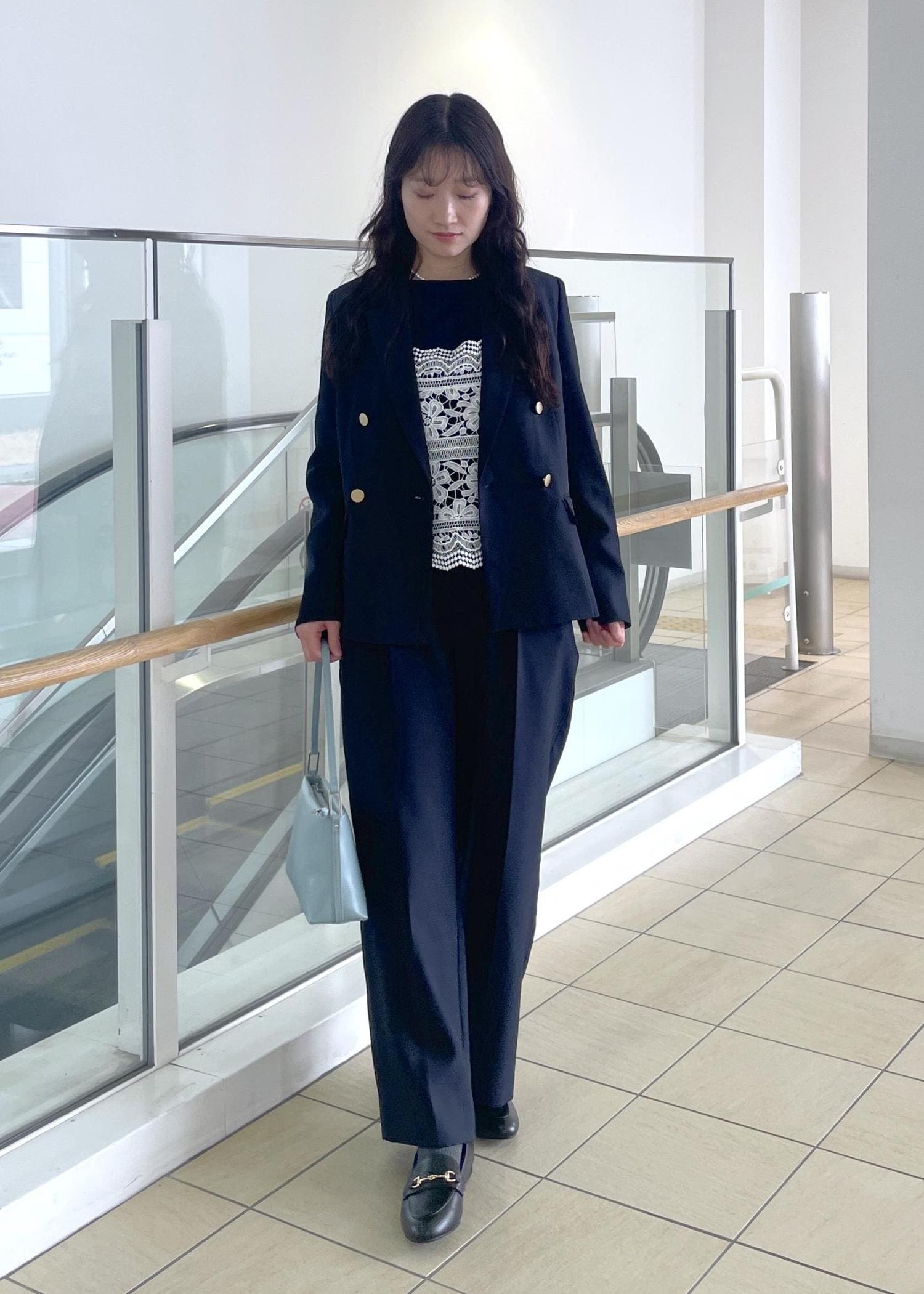 ネイビーのジャケット。