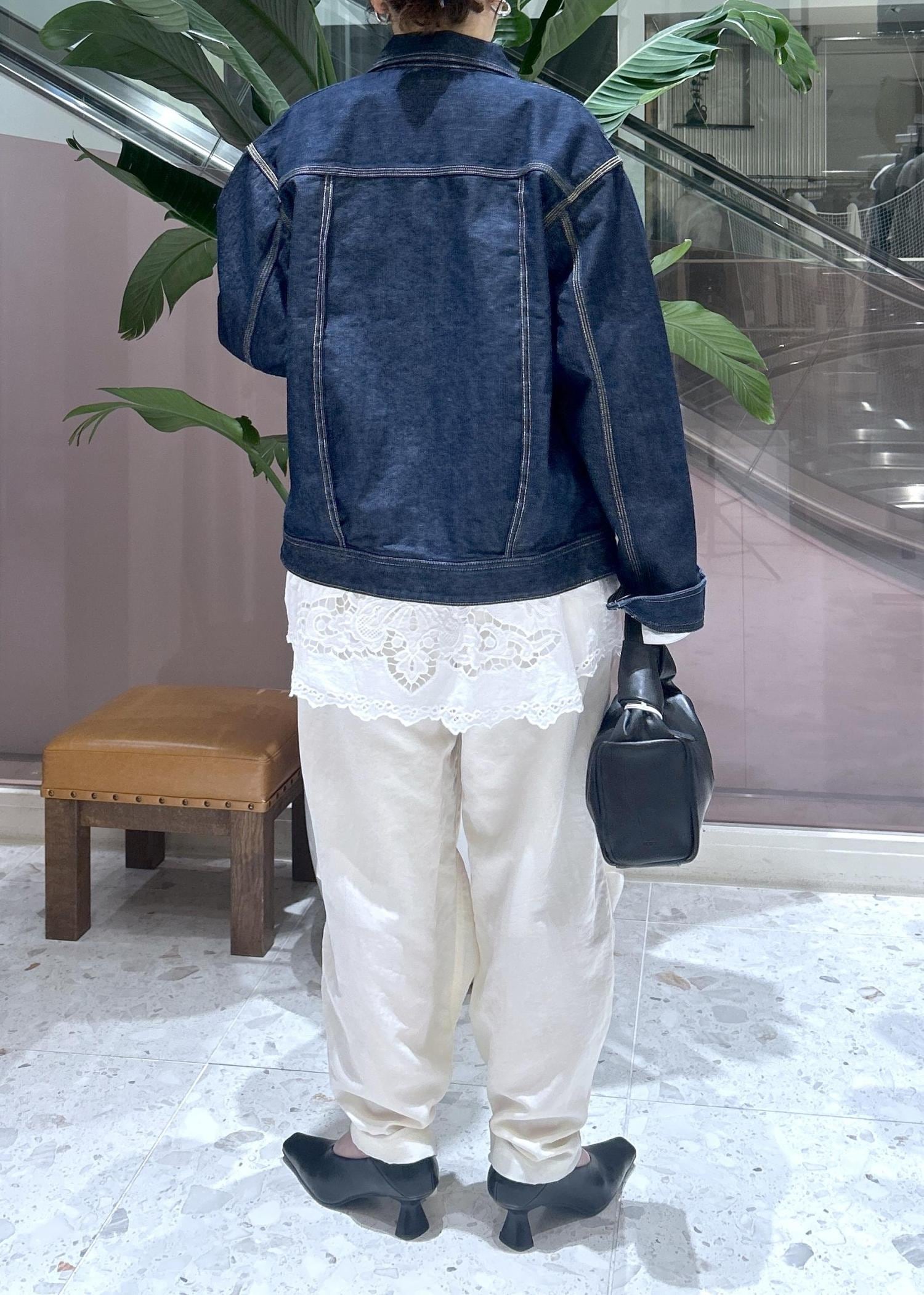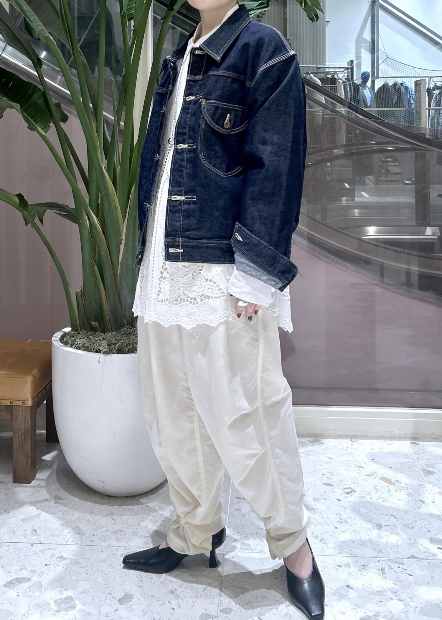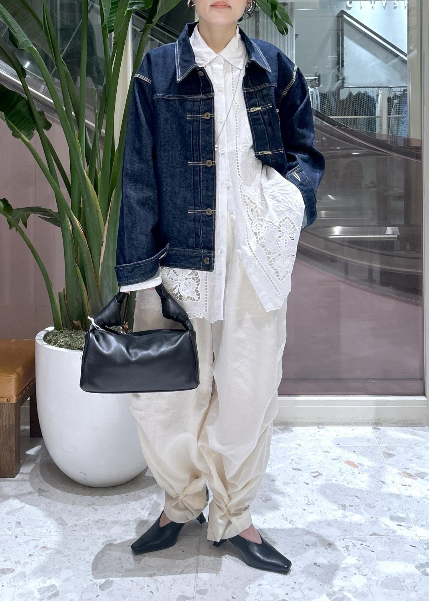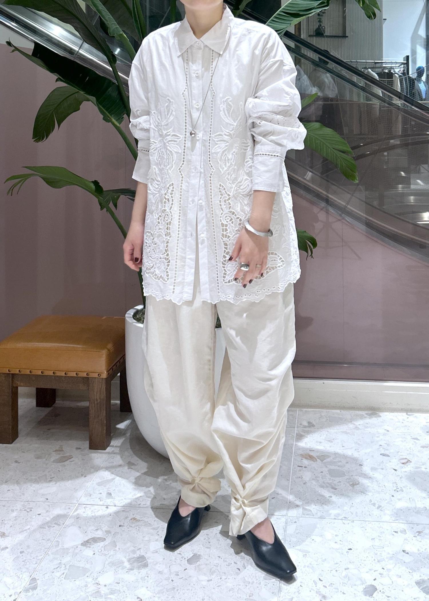 フェミニンなエンブロイダリー柄ですが、シャツの形はメンズライクなシルエットでこのバランスが可愛い^_^