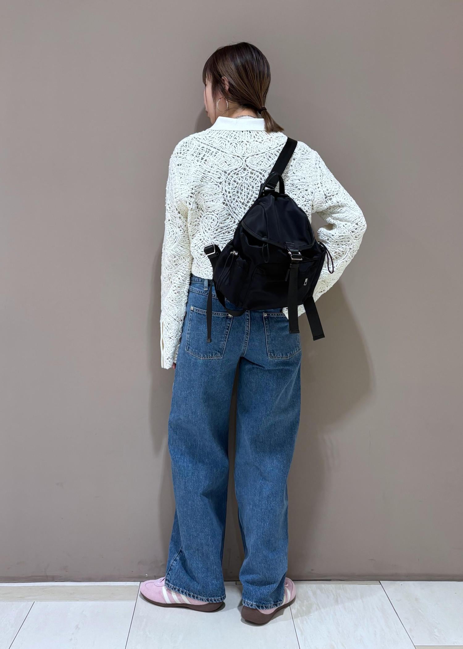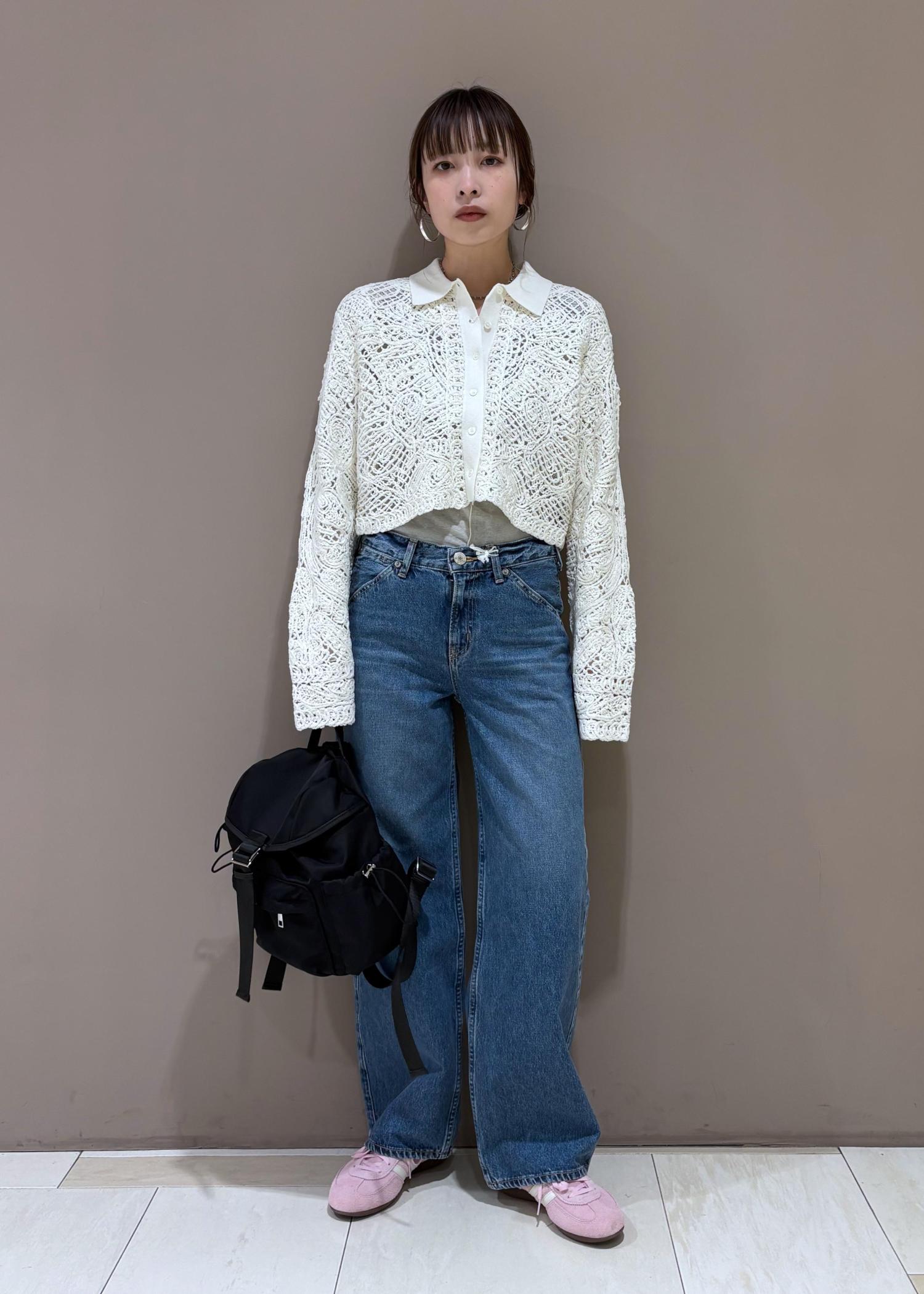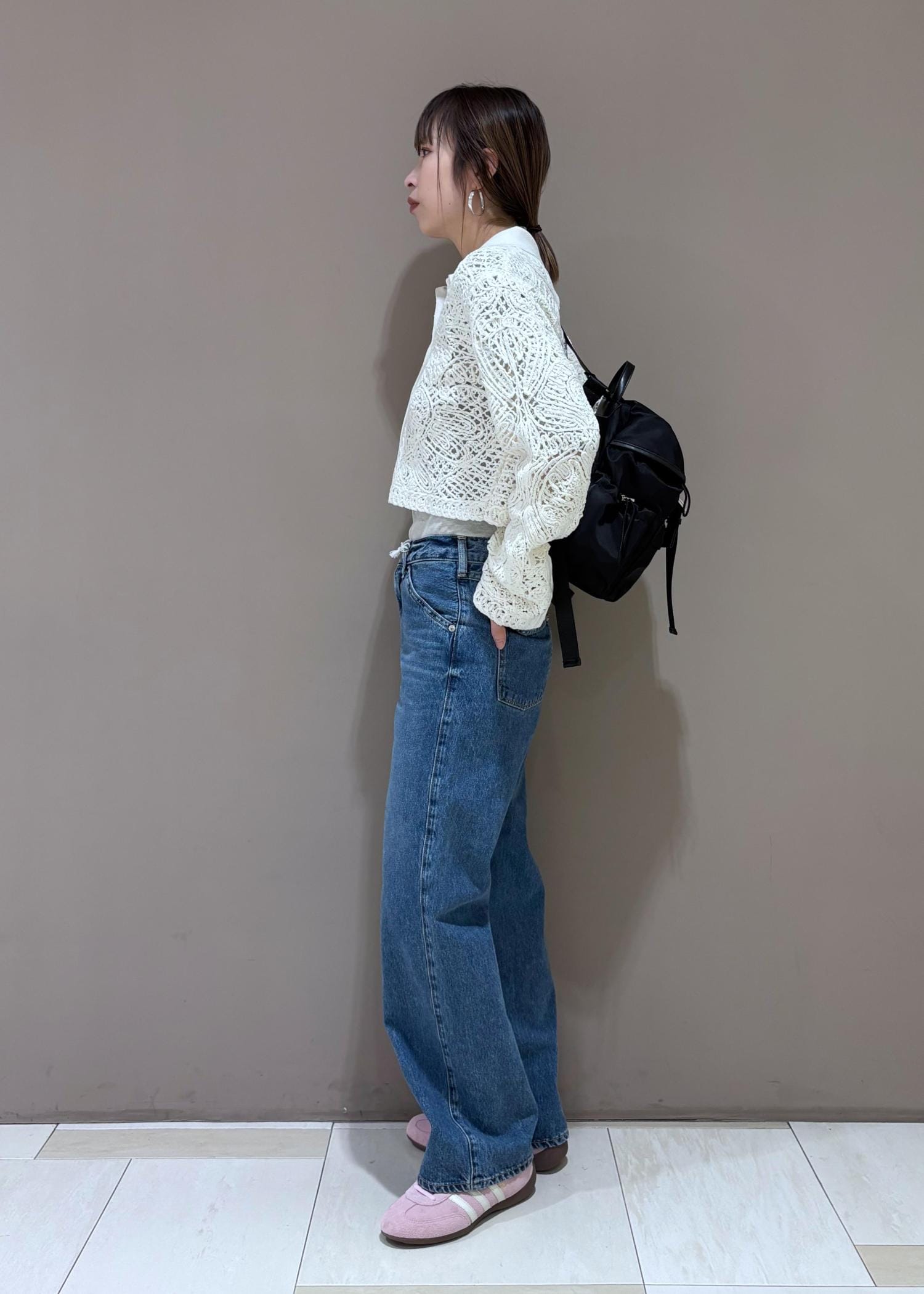 ウエストはやや大きめ、ロング丈のストレートデニム。