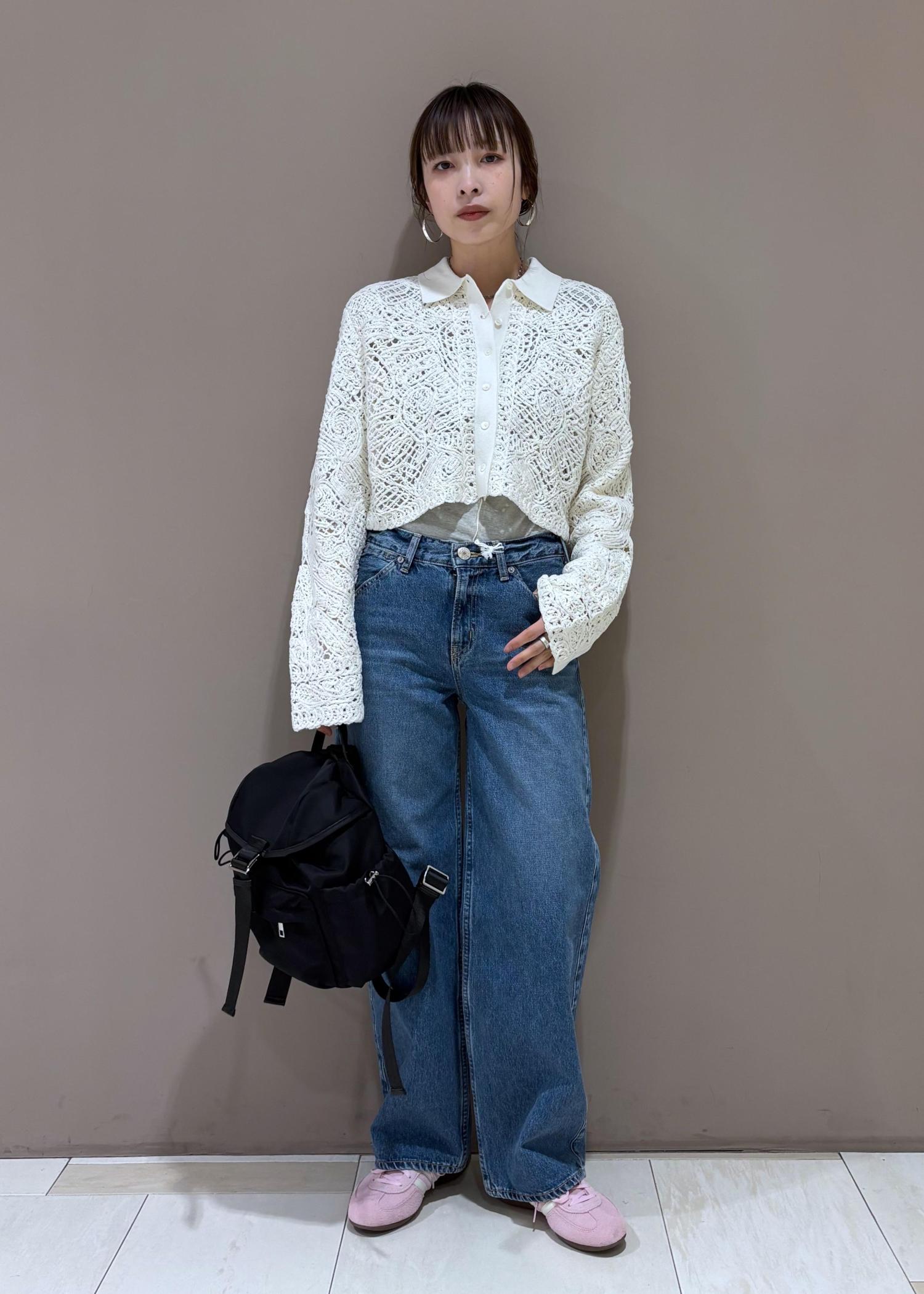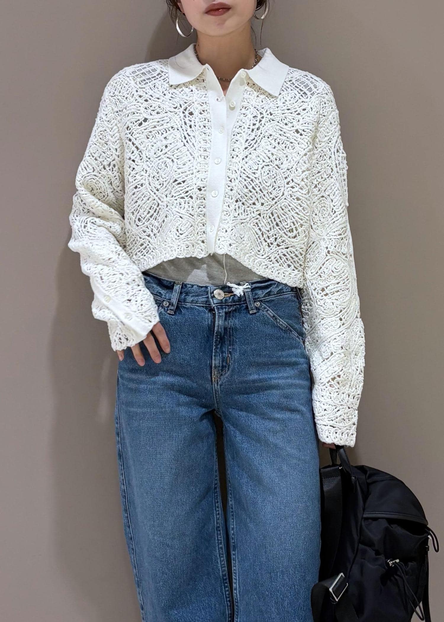 ADAM ET ROPÉ FEMMEコードレースパターンニットシャツオフホワイト / F¥26,400レビュー162cm.フリーサイズ着用。