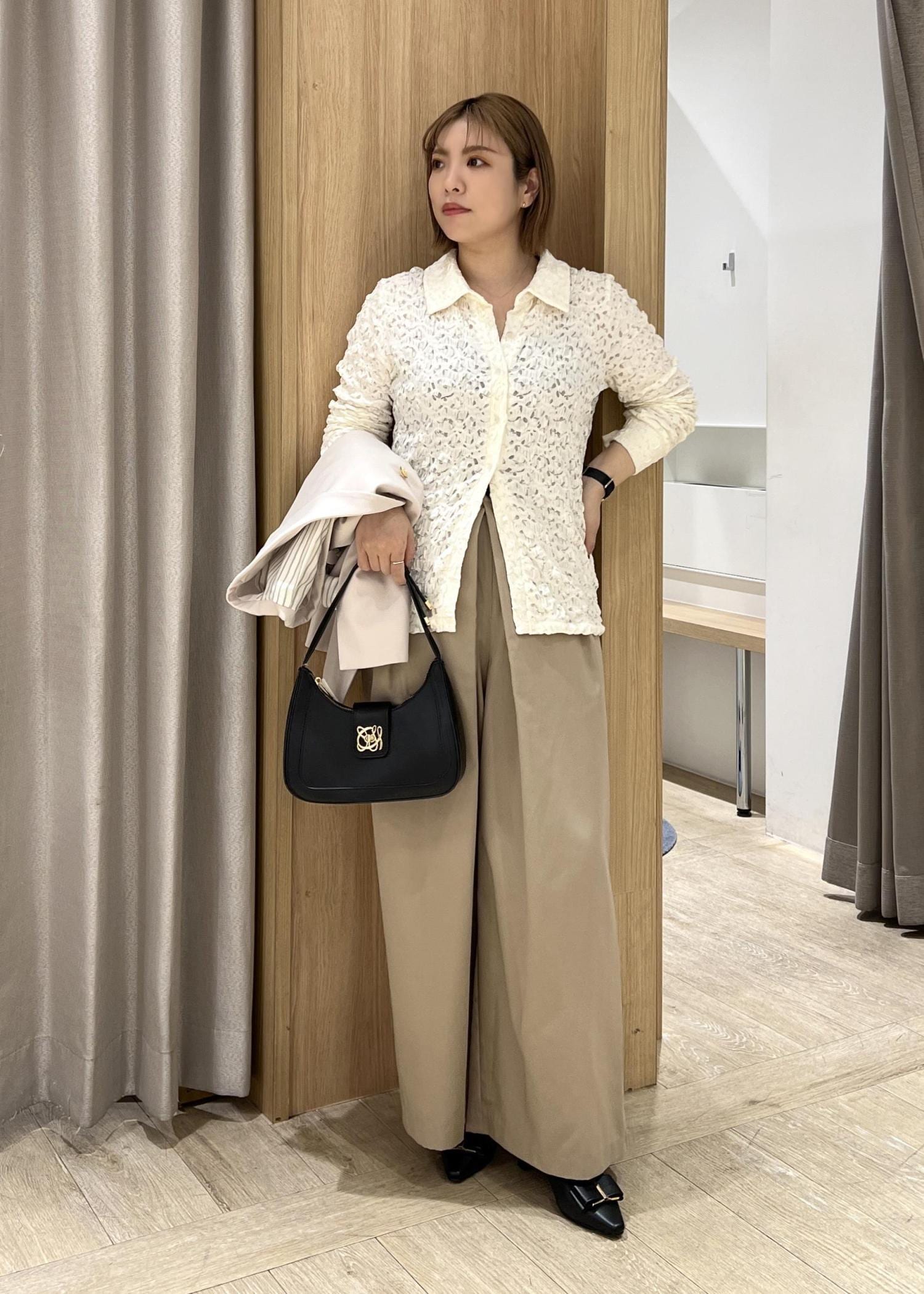 VISストレッチレースジャガード衿付きカーディガンオフホワイト / F¥5,489レビュー身長152cmでヒップにかかる少し長めの丈感。