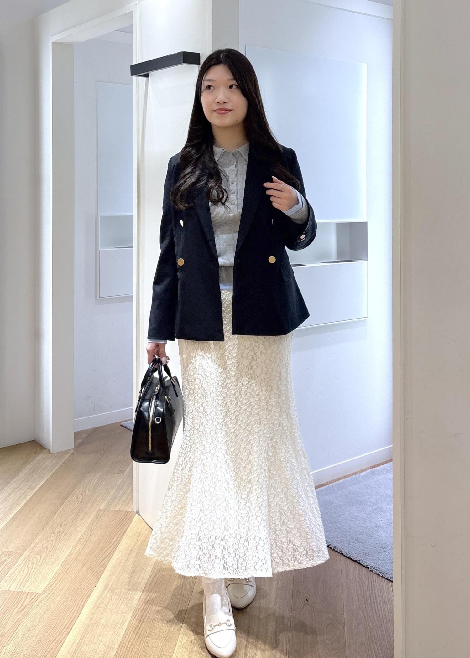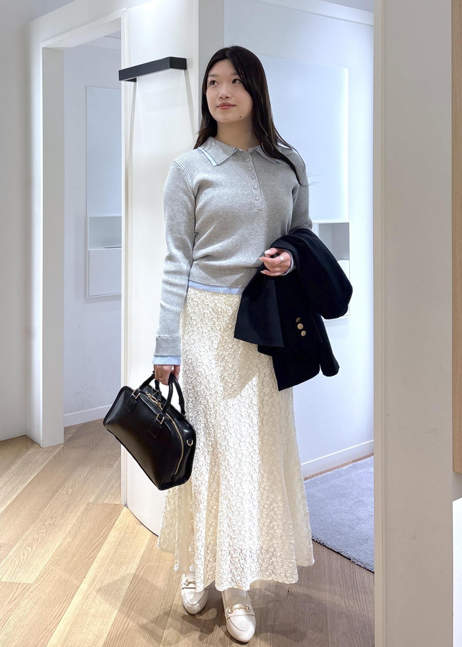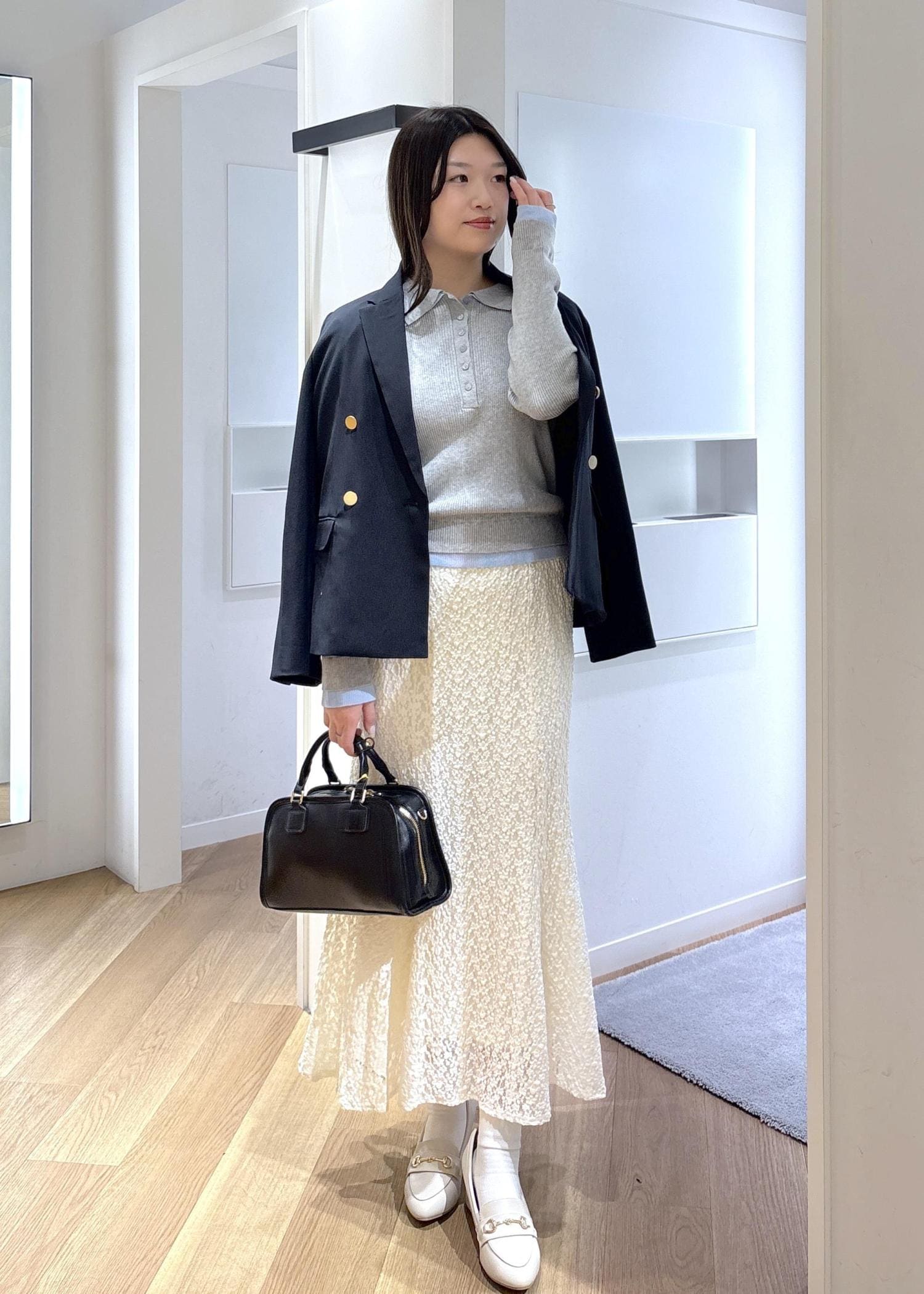 レーススカートで春らしく、軽やかな印象にしたお仕事コーデです!