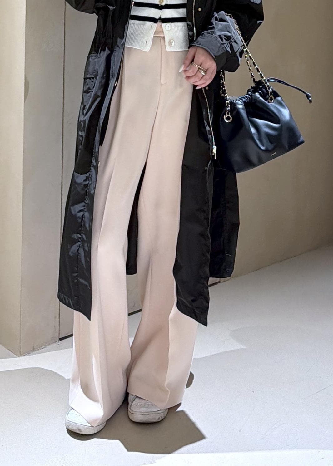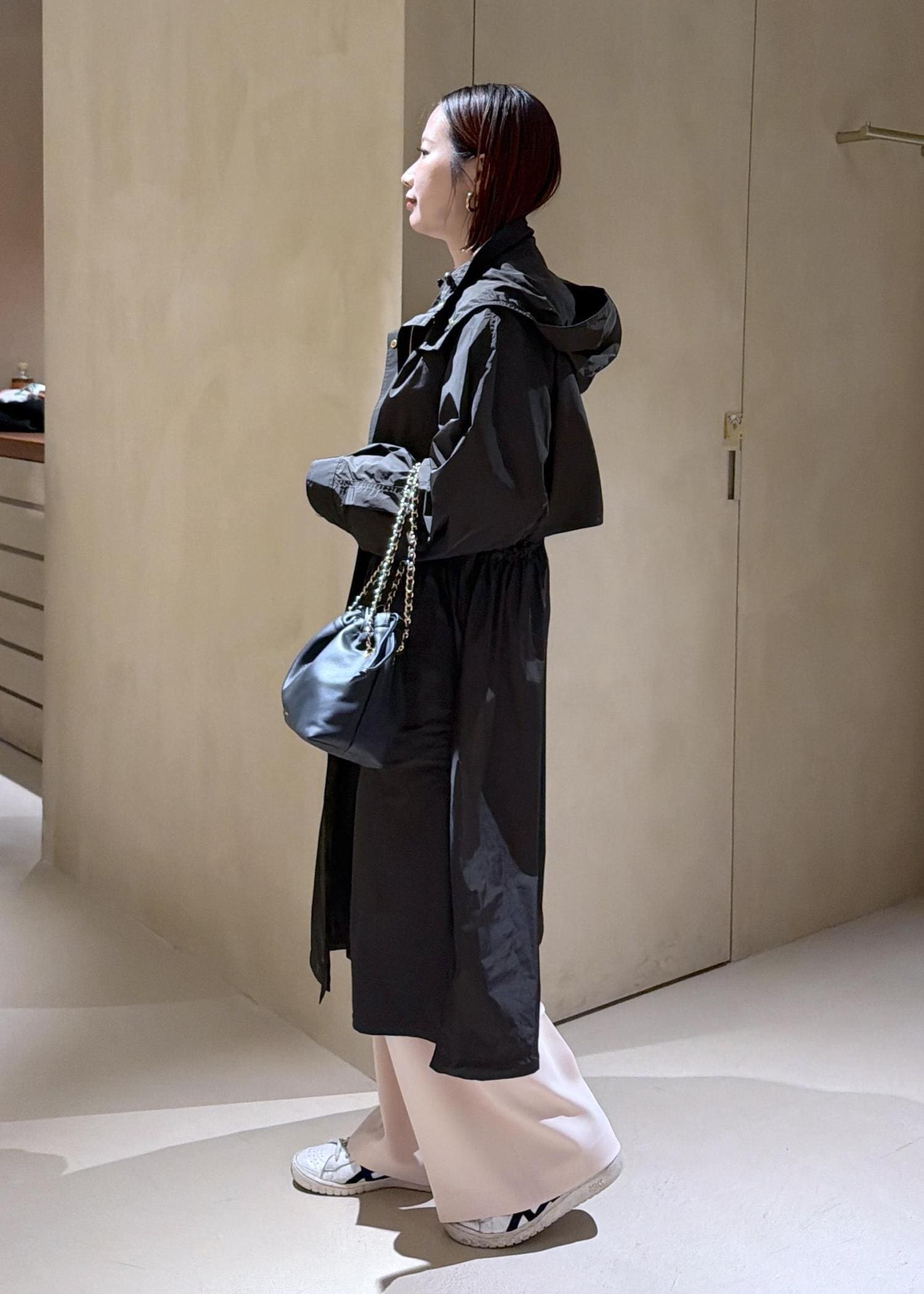 フラットシューズだと少し引きずる長さです。