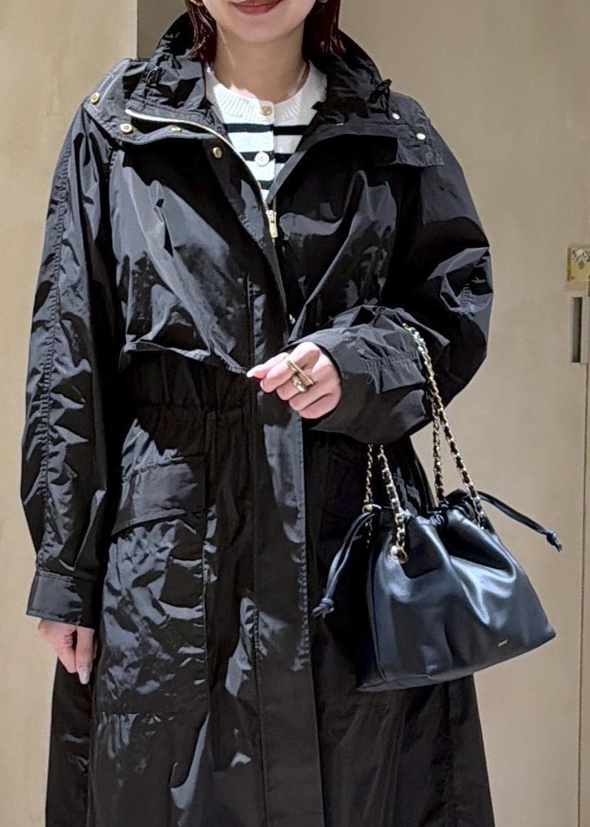 ROPÉ【撥水】タフタフーデッドドロストロング丈コートダークブラウン / F¥69,300レビュー161cmフリーサイズ着用。