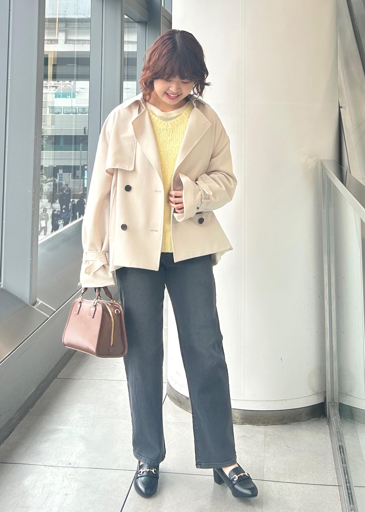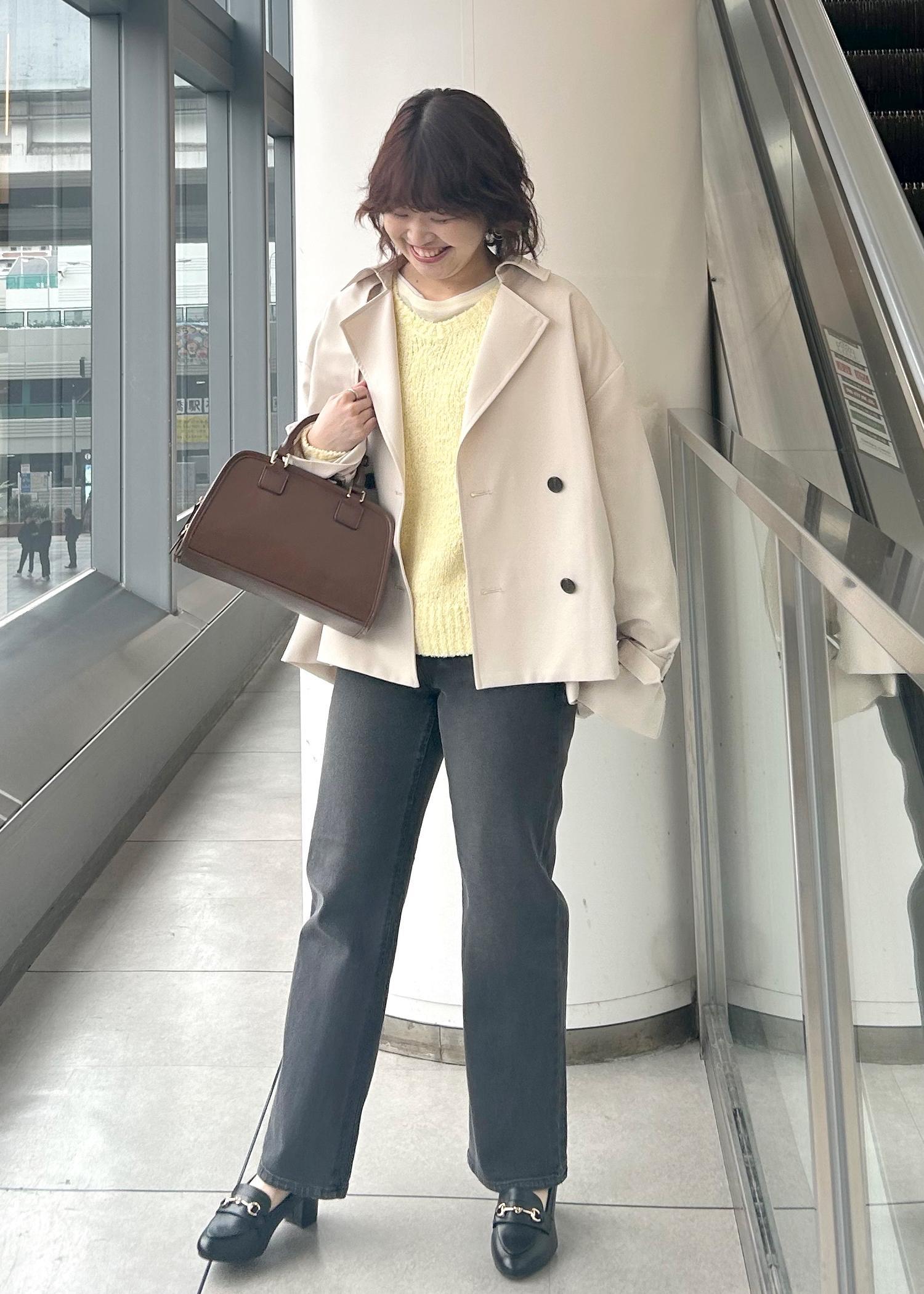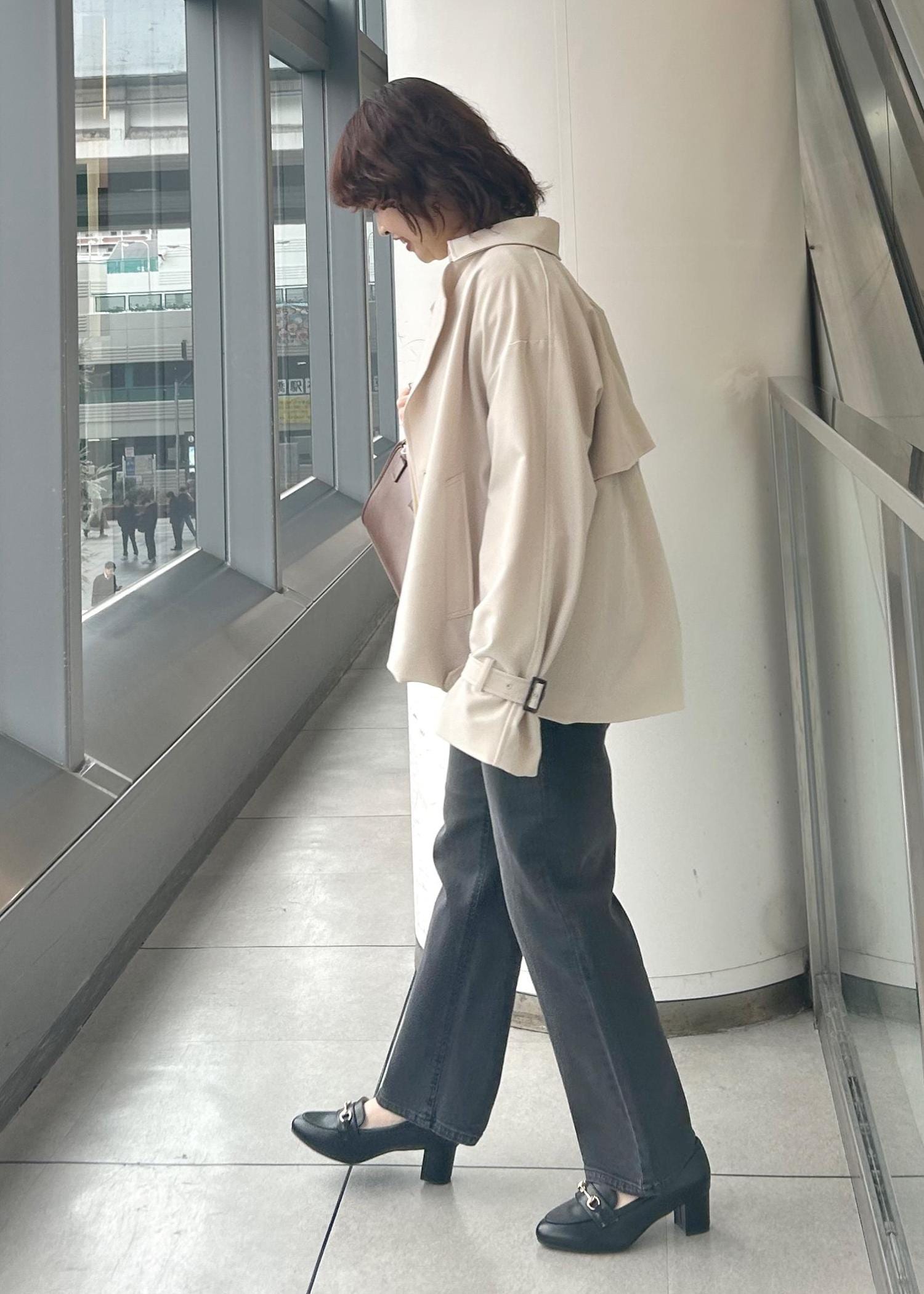 ほどよくゆとりがあるので中にニットや重ね着もできます。 -