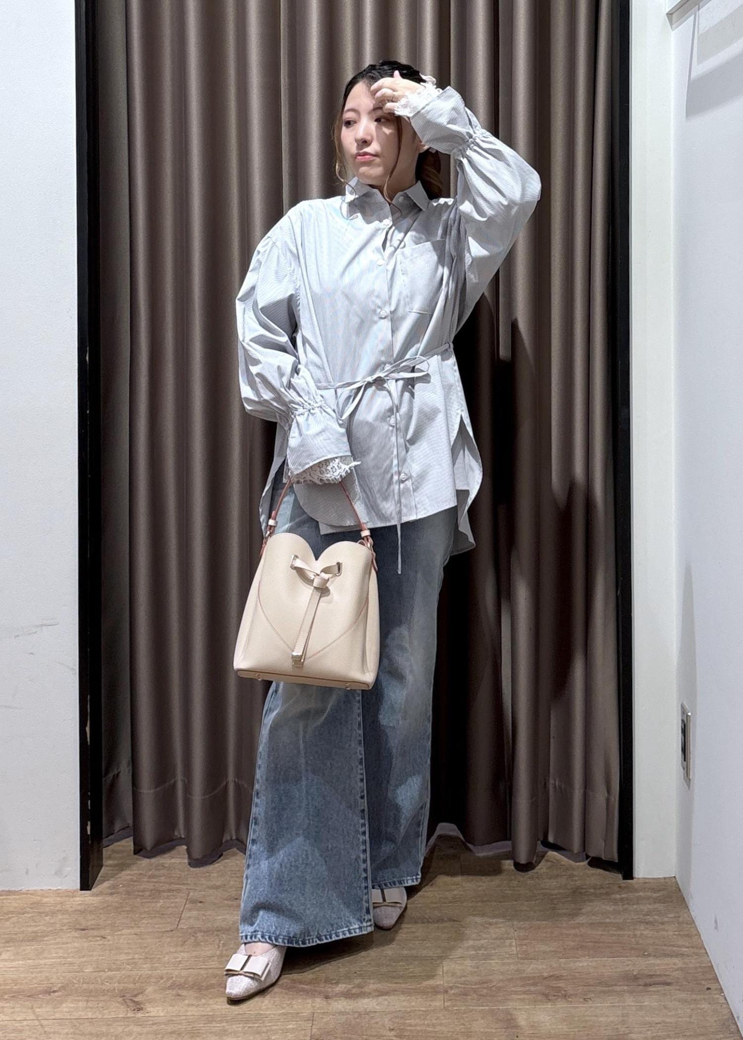 ゆったりしたサイズ感ですがウエストマークができるのでスタイルアップ◎