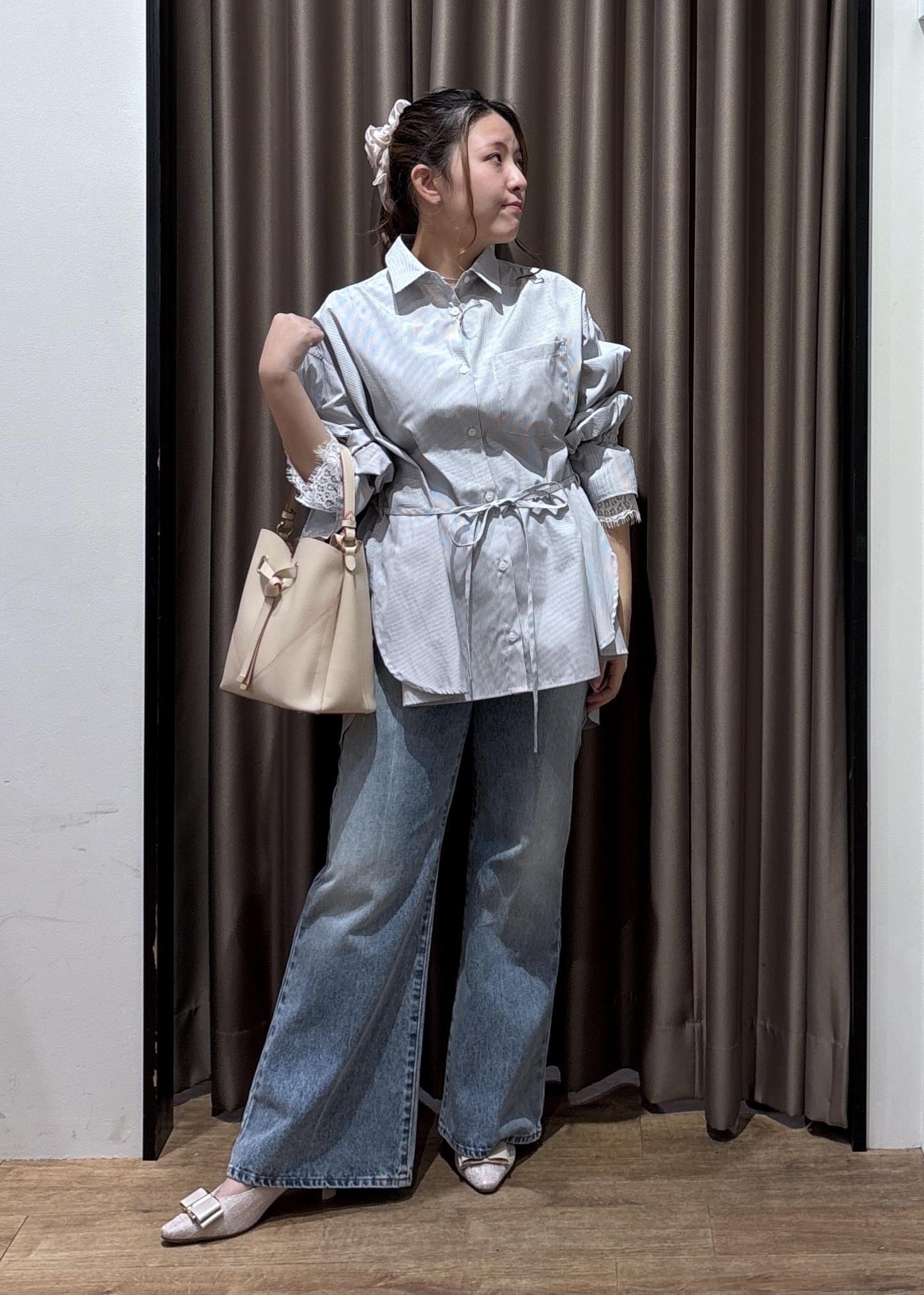 VISレーススリーブAラインシャツグレー / F¥5,929レビュー袖がレースになっていて1枚でも着映えします!
